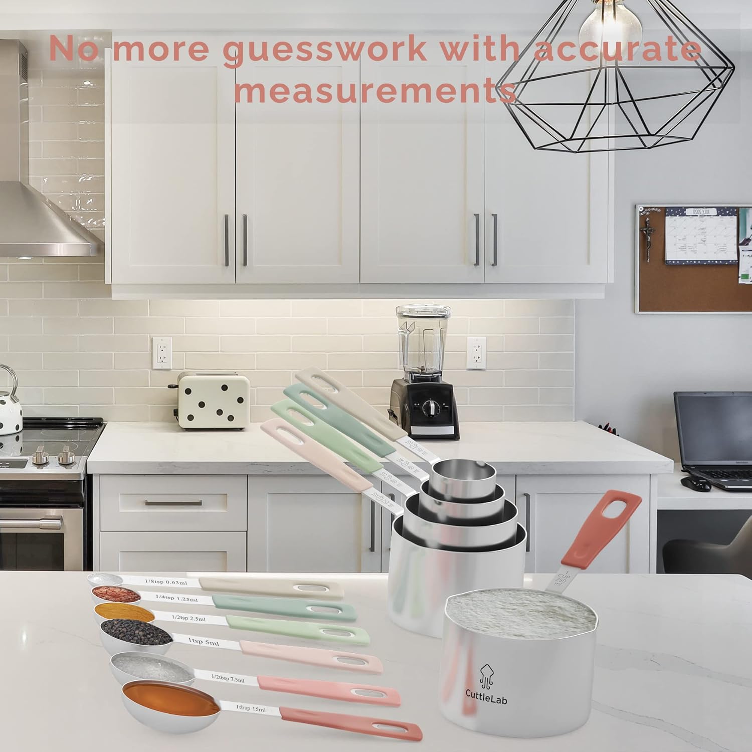 Measuring Cups and Measuring Spoons Set of 14 - Stainless Steel Measuring Cups and Spoons Set, Includes 1/8 Teaspoon Measuring Spoon, 1/8 Cup Measuring Cup, Leveler Dry (14, Country Chic)
