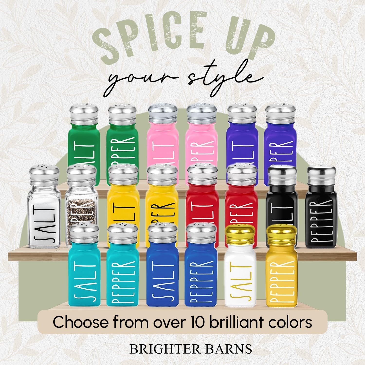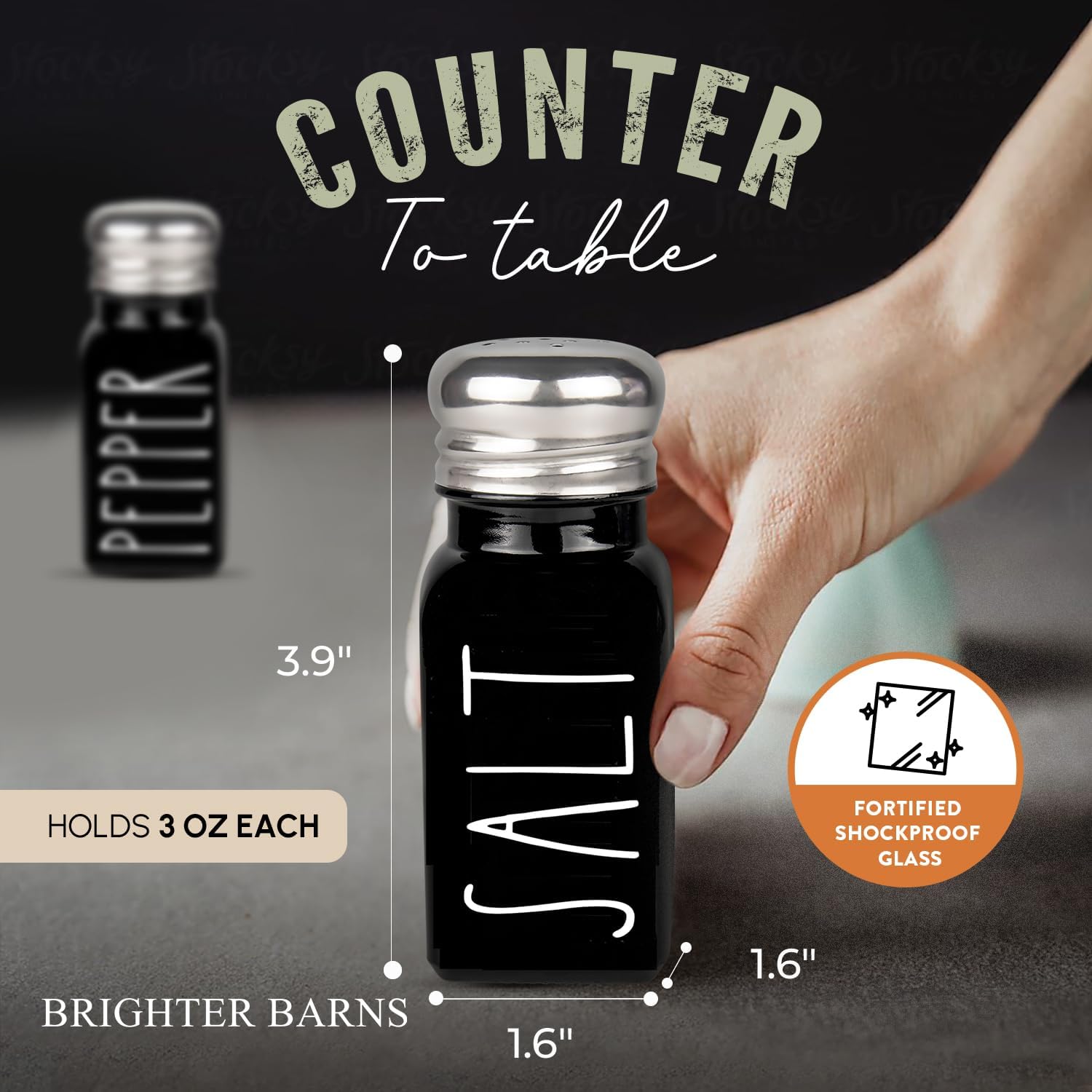 Black Salt and Pepper Shakers Set by Brighter Barns - Cute Kitchen Decor - Gothic or Halloween Kitchen Decor - Glass Shaker with Stainless Steel Lid for Home, Restaurant, Gifts (Black)