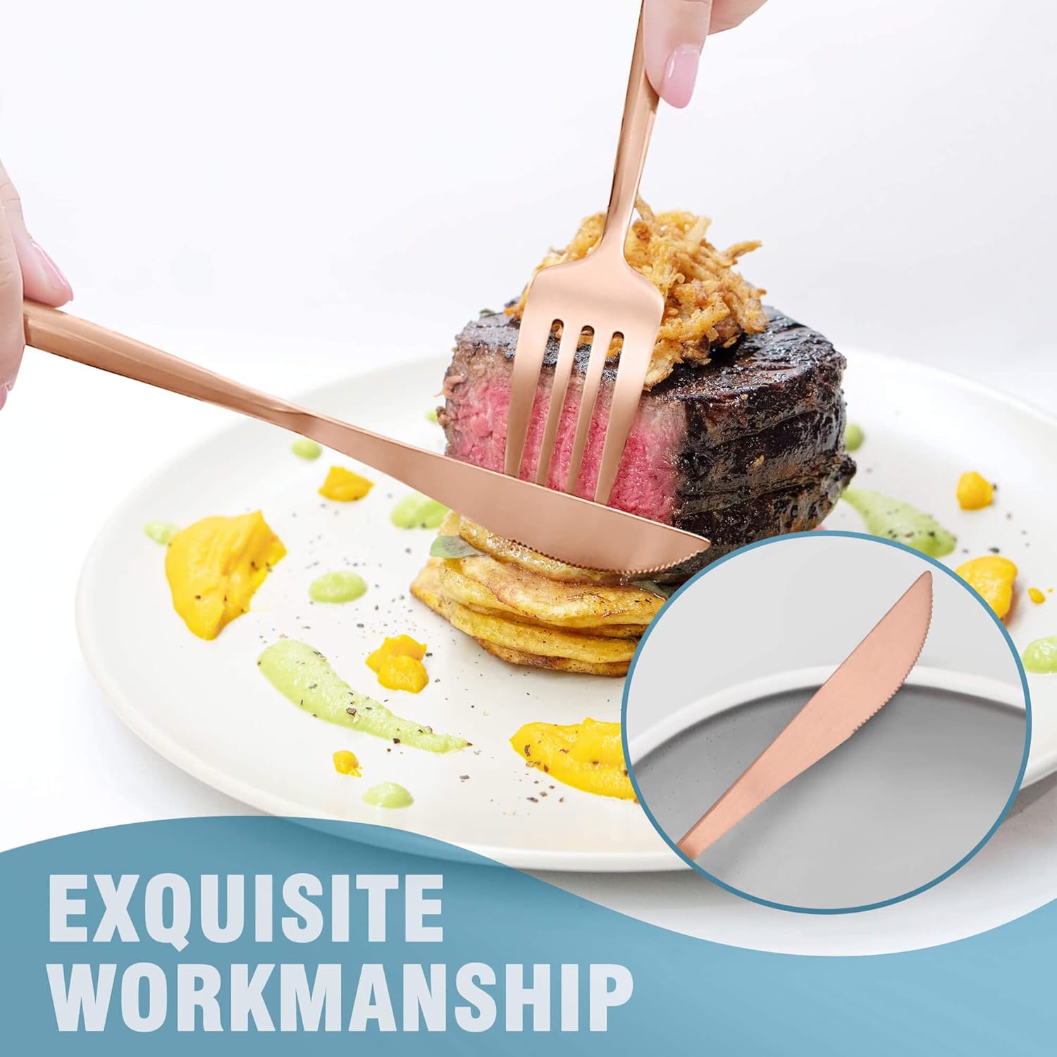 Matte Rose Gold Silverware Set for 6,Modern Stainless Steel Brushed Cutlery Set,30-Pieces Heavy Duty Flatware Set,Knives Spoons and Forks Set Utensils Set, Satin Finish, Dishwasher Safe