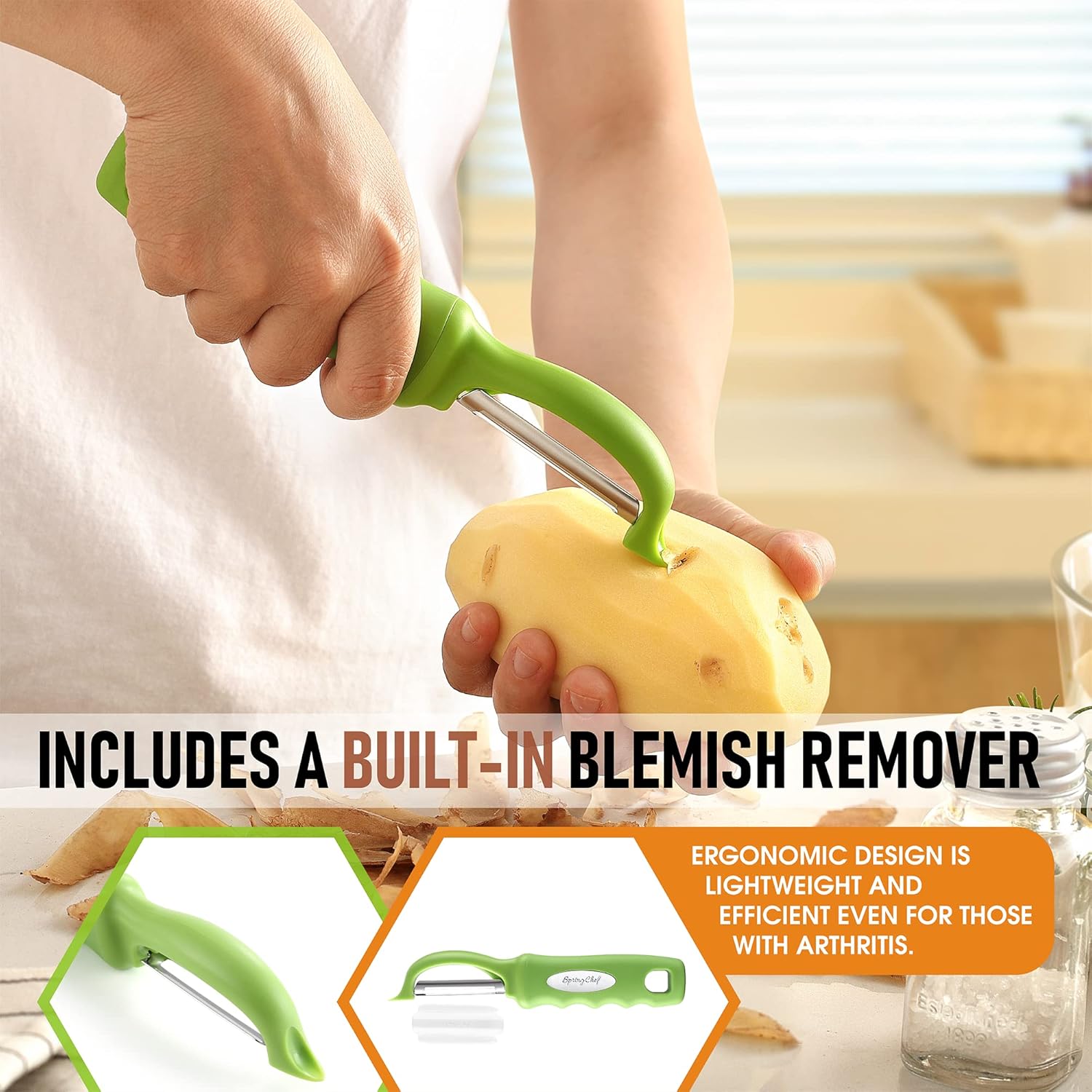 Spring Chef Premium Green Swivel Vegetable Peeler Set of 2, Stainless Steel Apple Peeler for Kitchen with Soft Grip Handle, Dishwasher Safe, Perfect for Potato, Carrot, Veggie, Fruit, Apple, Mango