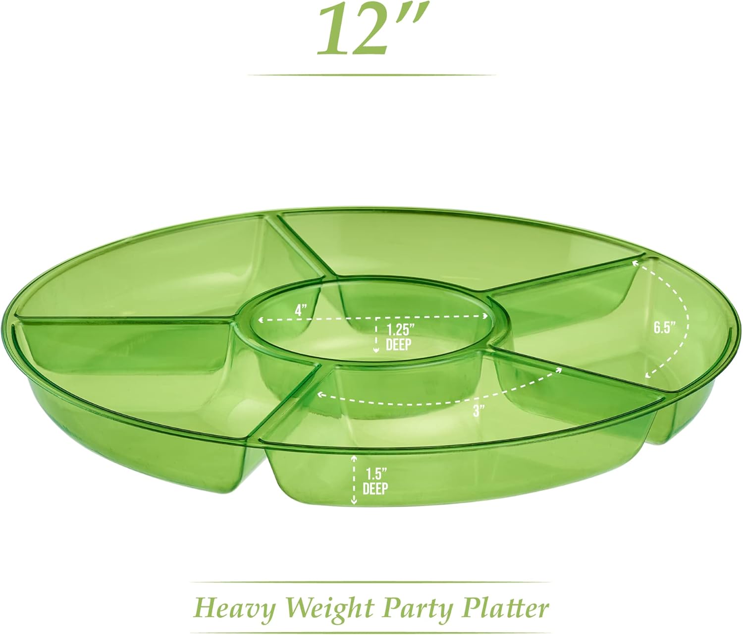 Plasticpro 6 Sectional Round Plastic Serving Tray/Platter (2, Green)