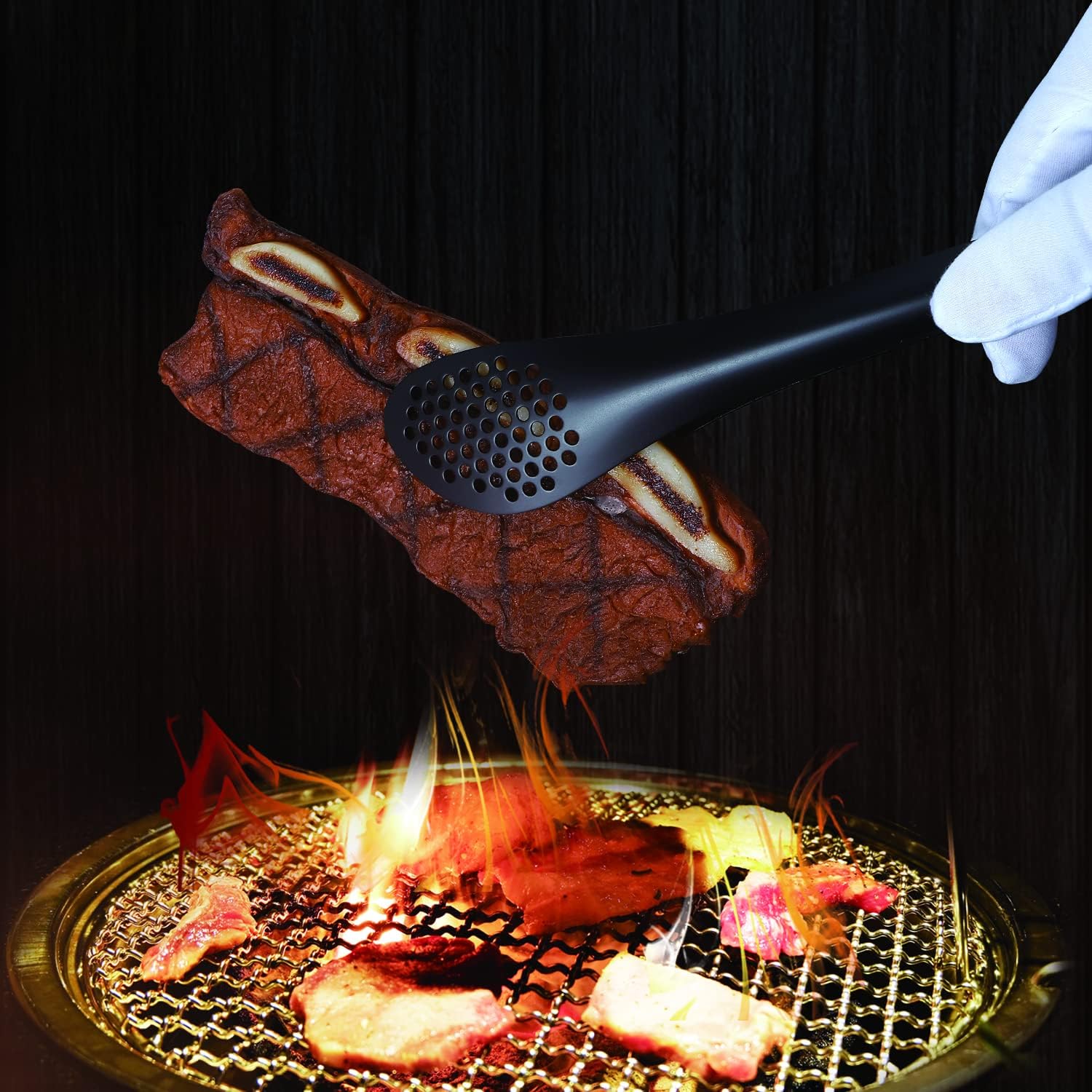 MSY BIGSUNNY Stainless Steel Buffet Tongs - Heavy Duty Kitchen Food Tong for Cooking and Serving (Black - 11" Serving Tongs)