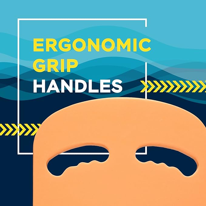 • ERGONOMIC GRIP HANDLES - Featuring two ergonomic grip handle cutouts with grooves for your fingers, this kickboard allows you to hold it with perfect form and master your swimming technique.