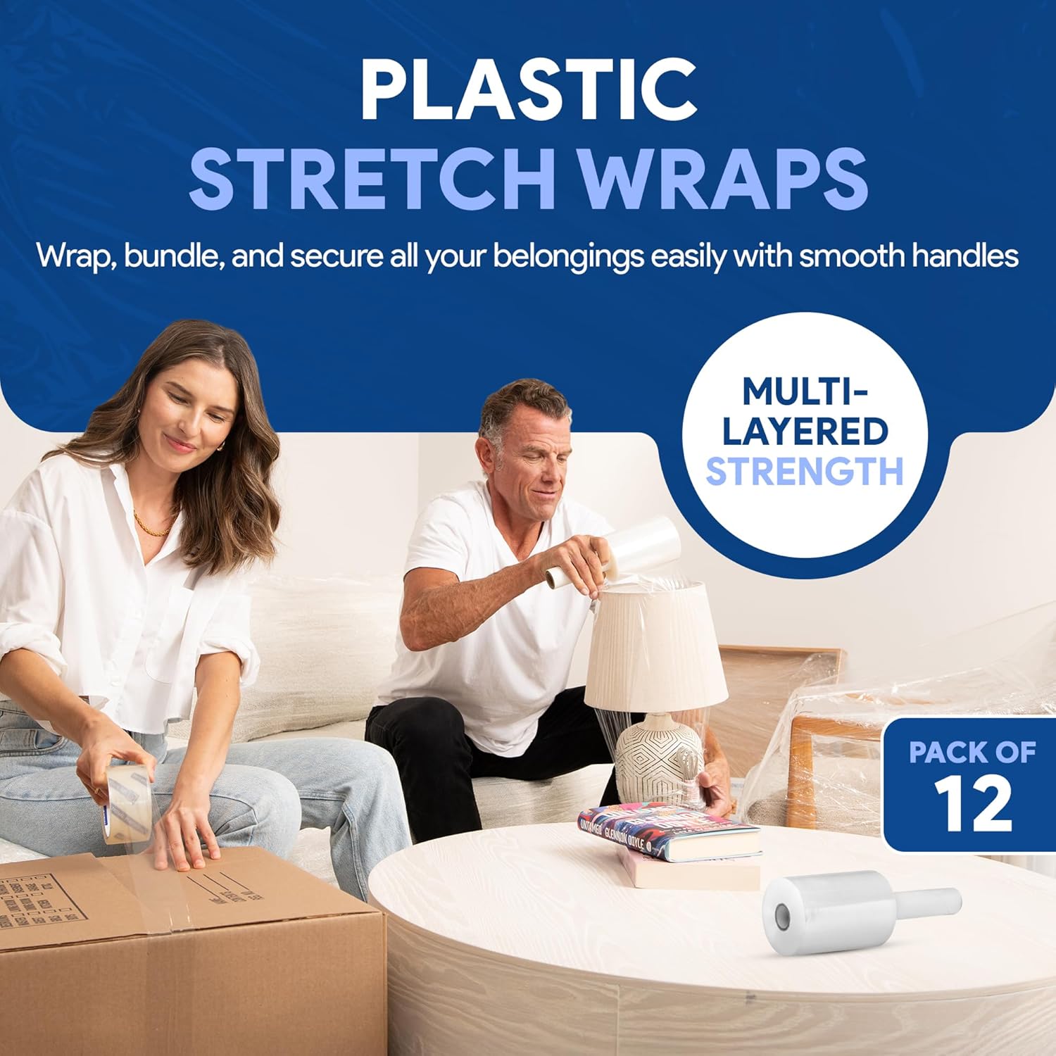 - CONQUER MOVING DAY: Wrap, bundle, and secure all your belongings with ease using this 12 pack of 5" x 1000 ft stretch film with 3" core. Move with confidence knowing your items are protected!