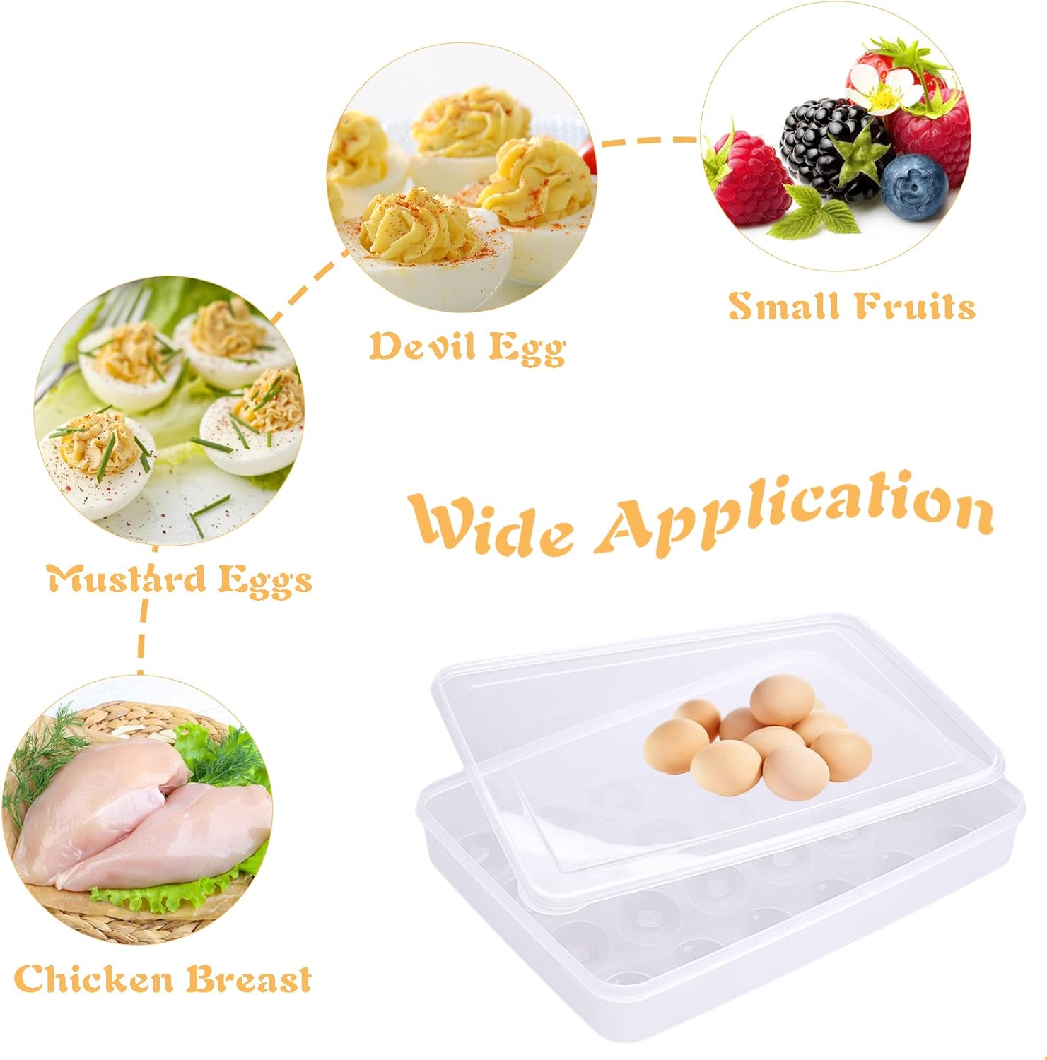- Wide Application:Our egg containers are suitable for many occasions,such as freezer rooms,refrigerators,food storage rooms,cabinets,perfect for storage of eggs,devil eggs,mustard eggs,Easter decoration eggs,kiwi fruit and strawberries.