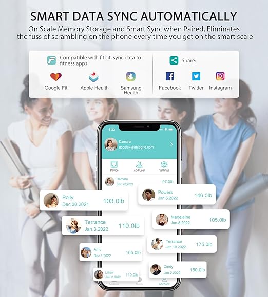 • 4.Syncs with Fitdays APP & Fitness APPs: Download "Fitdays" app on Mobile App Stores.The weight scale syncs the data onto your smartphone automatically via Bluetooth 5.0 BLE. The app provides detailed charts and trends of 16 body composition metrics over days, weeks, months or even years. It can also syncs data to Fitness APPs and share to soical media, which means you can track & manage your health or share your achievements with friends anytime, anywhere.