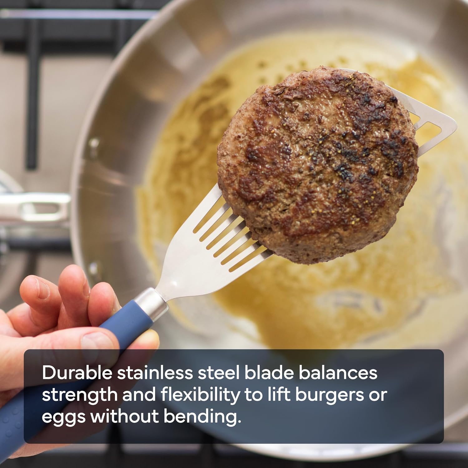 - PRECISION IN EVERY FLIP: This wide-slotted turner is perfect for cooking a variety of meals. Whether it's delicate eggs, sizzling fish, meaty burgers, or fluffy pancakes it allows you to fry and flip with ease, ensuring your creations are cooked just the way you desire.