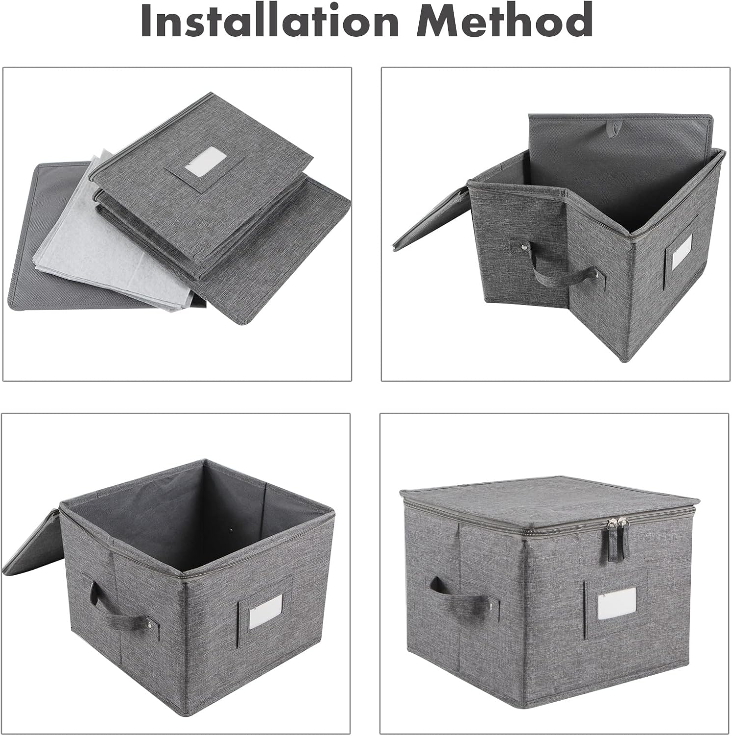 - PREMIUM DURABLE MATERIAL - The china storage containers for 12 place setting is made of premium 300D oxford fabric and sturdy thick cardboard, each dinner plate storage holds 12 plates and includes 12 felt plate separators for protection against chipping