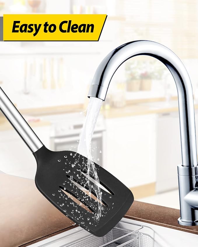 - Widely Used : Thin and flexible edge of the silicone turner is ideal for flipping,frying and turning food; Large capacity design of cooking spoon, used to hold food more convenient; Slotted Spoon can quickly drain the water
