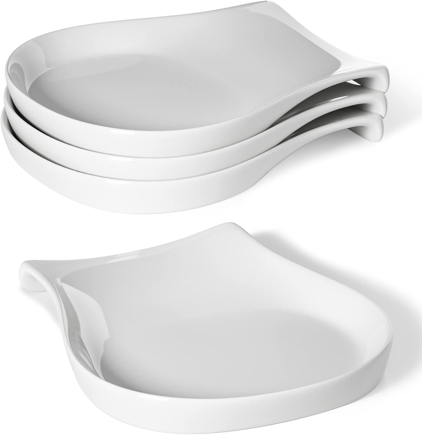 Porcelain Spoon Rest for Kitchen Counter Ceramic Small, 4.5 Inches Ladle Rest, Spoon Holder for Stove Top, Spatula Accessories for Countertop, Set of 4, White