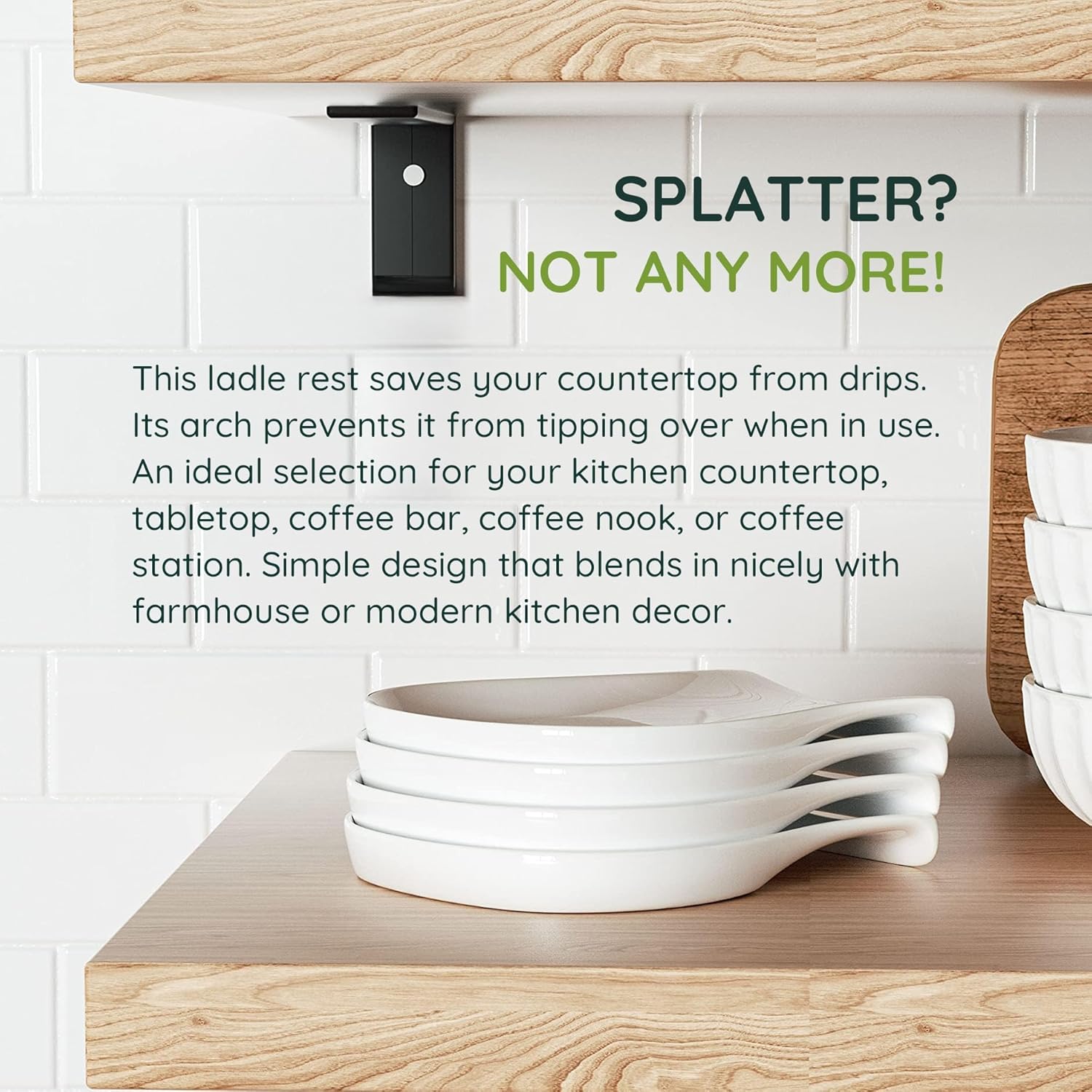 - SPLATTER? NOT ANY MORE! This ladle rest saves your countertop from drips. Its arch prevents it from tipping over when in use. An ideal selection for your kitchen countertop, tabletop, coffee bar, coffee nook, or coffee station. Simple design that blends in nicely with farmhouse or modern kitchen decor.