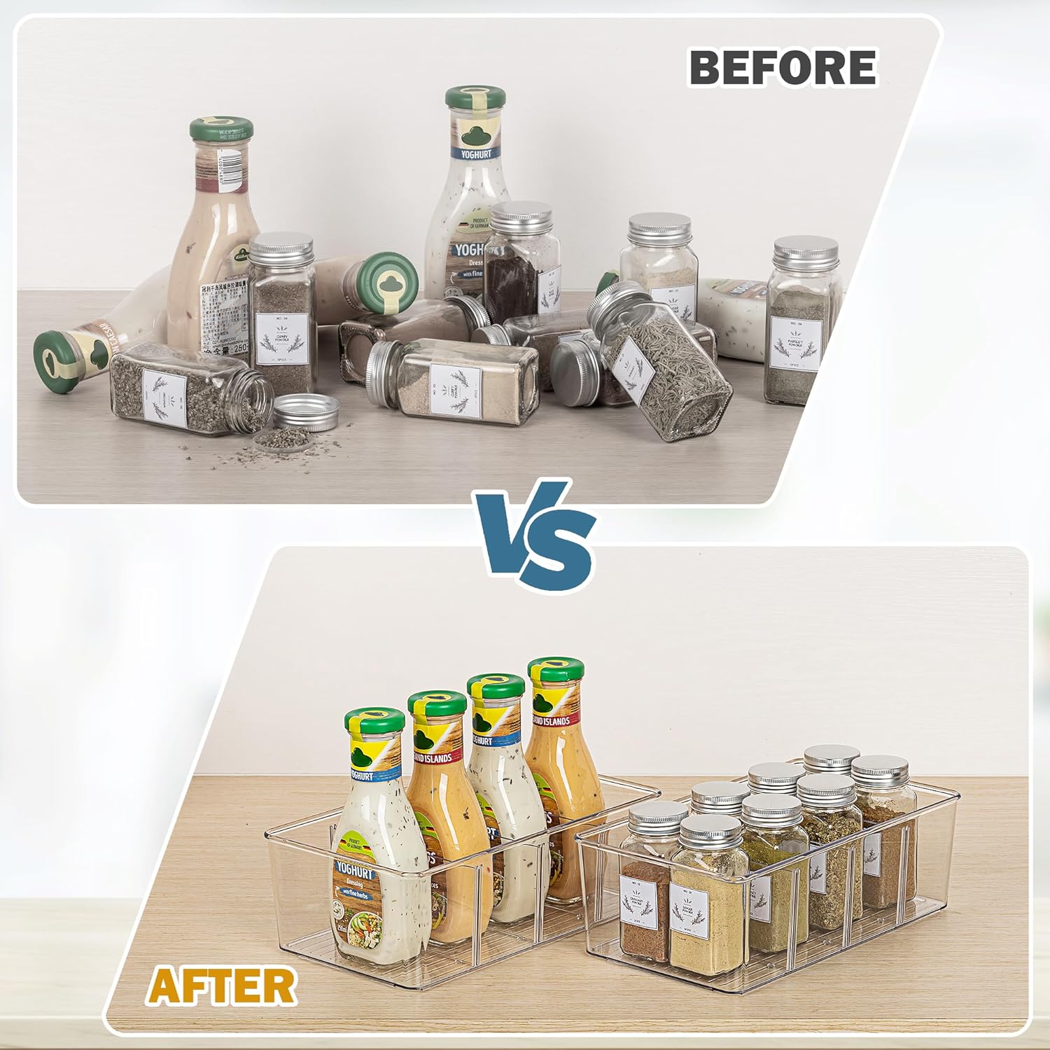 - Removable Dividers β There are 3 removable dividers in each food storage organizer bin, making it easy to separate and organize your items, you can quickly see and grab what you need.