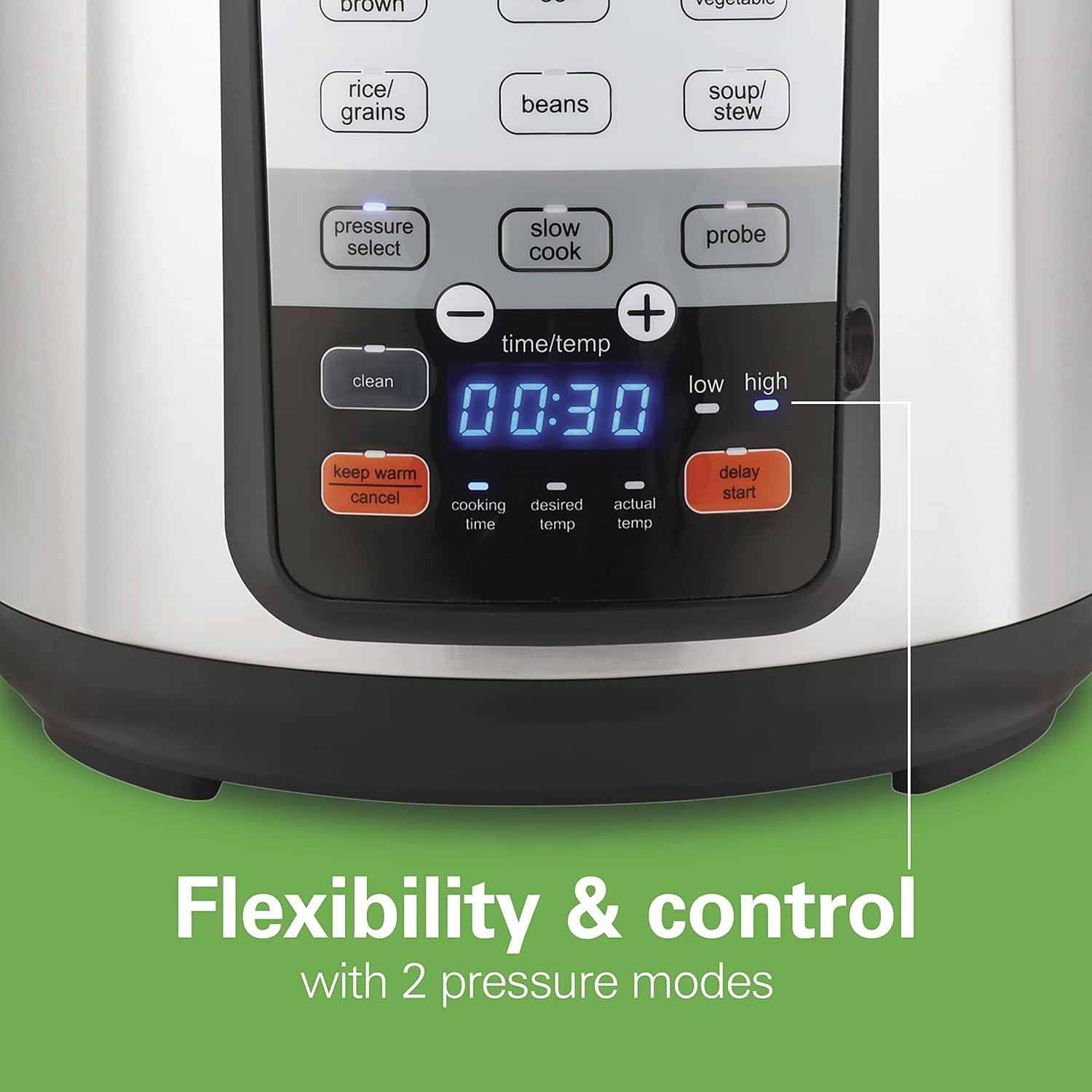 Hamilton Beach 6-in-1 Electric Pressure Cooker with Temperature Probe, Slow Cooks, Sautés, Browns, Steams, Rice Function, Egg and More, 6 Quart Capacity, Stainless Steel (34506)