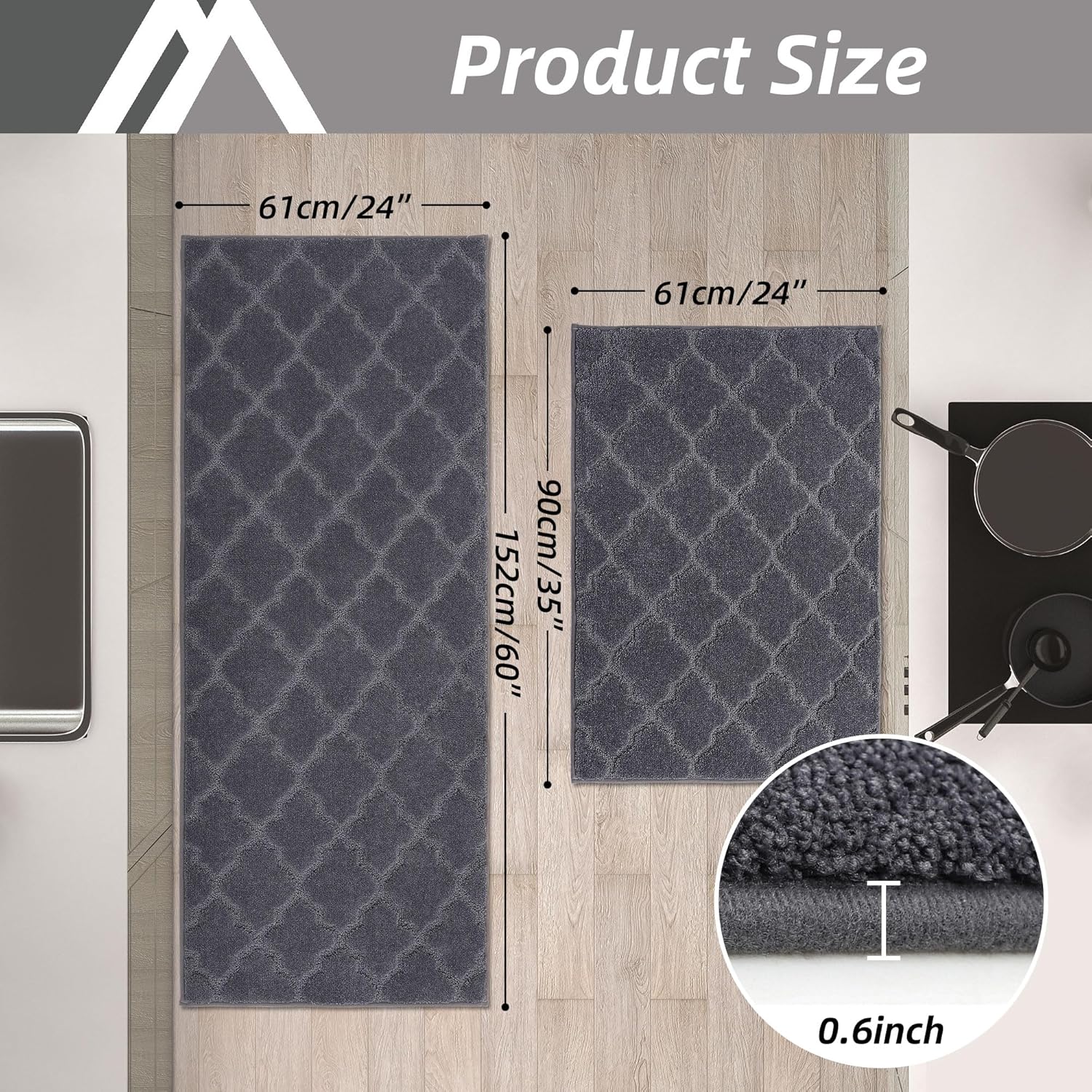 COSY HOMEER Soft Kitchen Rugs [2 PCS] for in Front of Sink Super Absorbent Kitchen Floor Mats and Mats 24x35 Inch/24X60 Non-Skid Kitchen Mat Standing Mat Washable,Polyester,Dark Grey