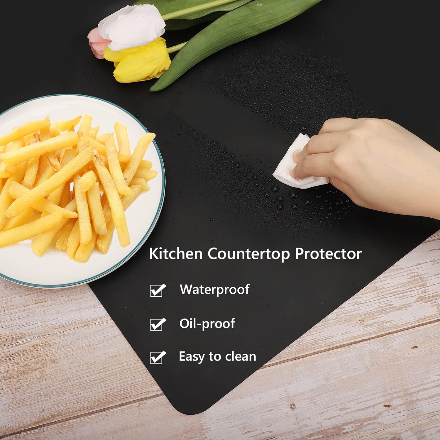 - Oversize : Sized at 32 x 24 x 0.05 inches (L x W x T), larger and thicker than regular size, provides a larger area to protect your counter top. It can be placed under the microwave, pot, air fryer, induction stove, toaster oven, coffee maker, cutting board, etc.