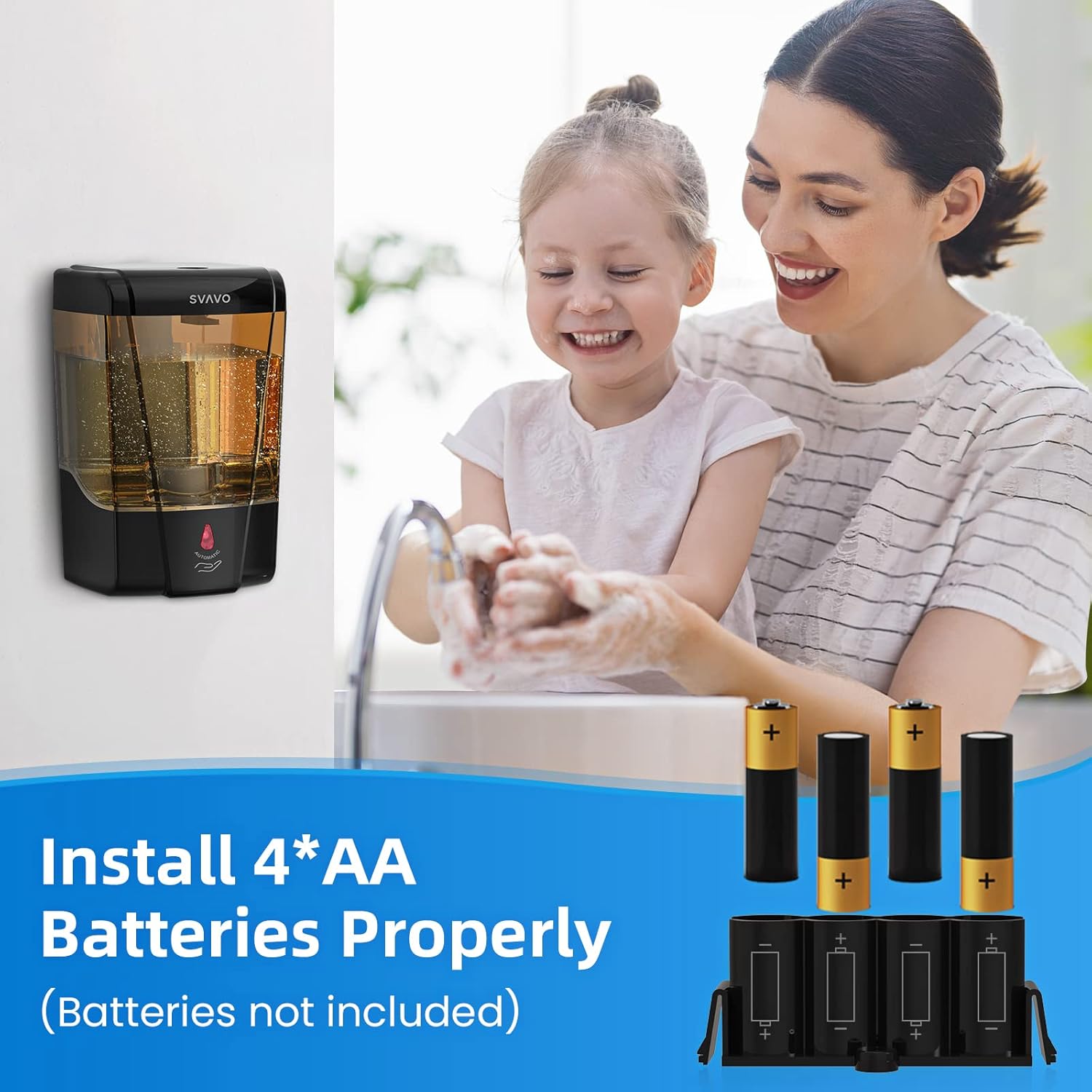- ✔️ [Space Saving & Energy Efficiency] The wall-mounted soap dispenser features save space on a confined vanity; The mount design allows you to save countertop space naturally-Small Footprint and Large Capacity. 4 AA-size batteries (not included) will allow you to enjoy hands-free soap dispensing for up to a year before having to change batteries, not over consume battery.