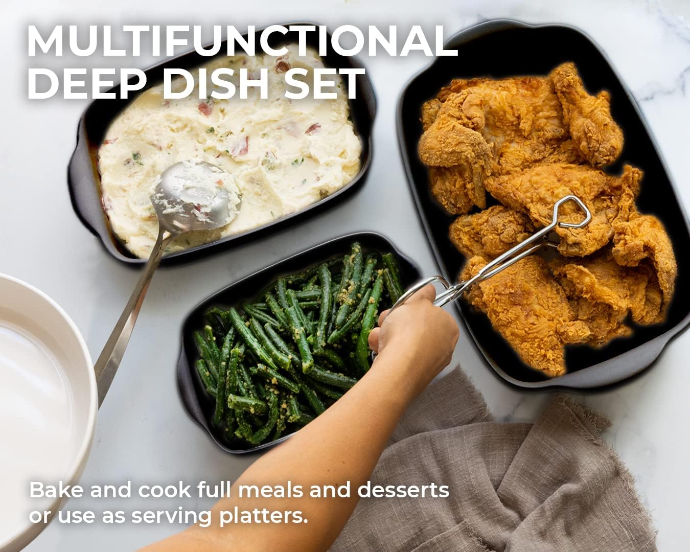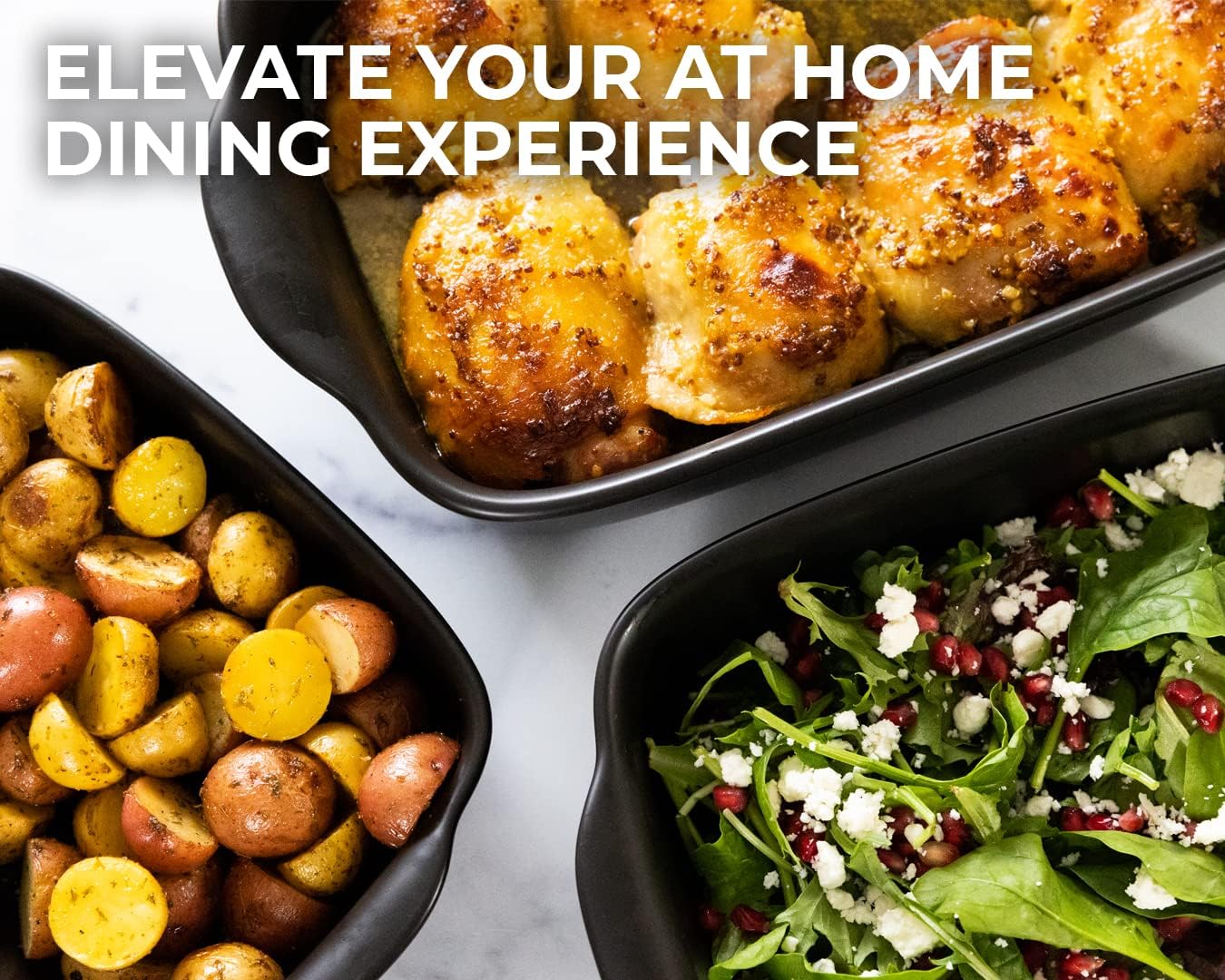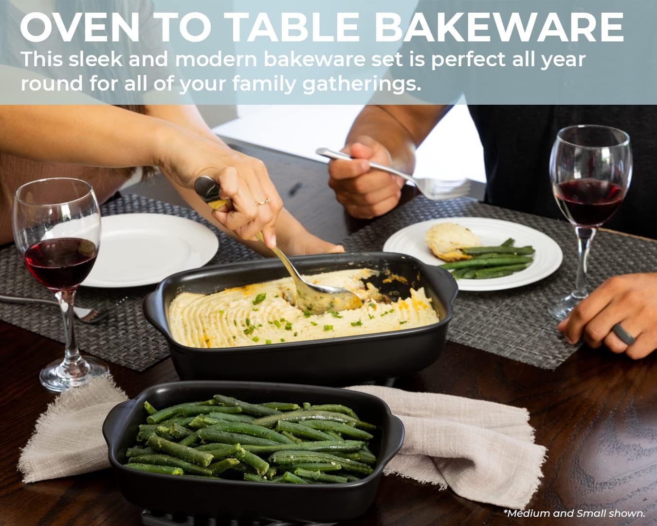 Saffron & Sage Casserole Dish Set of 3 - Baking Dishes for Oven, Contemporary Black Ceramic Baking Dish Set, Heavy Duty Bakeware, Up to 500° High Heat Resistant, Dishwasher, Freezer and Food Safe