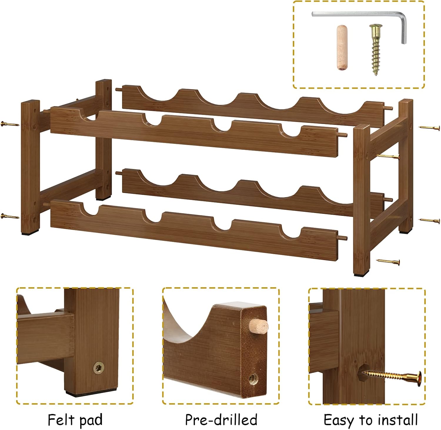 - STURDY AND REFUDES TO SHAKE-BAMBOO AND NON-SLIP MATS: The higher quality bamboo makes our wine rack more sturdy and adds a non-slip pad at the bottom of the wine holder, which nicely enhances the durability and stability of the look wine racks and ensures that the 2 tier wine rack will not shake
