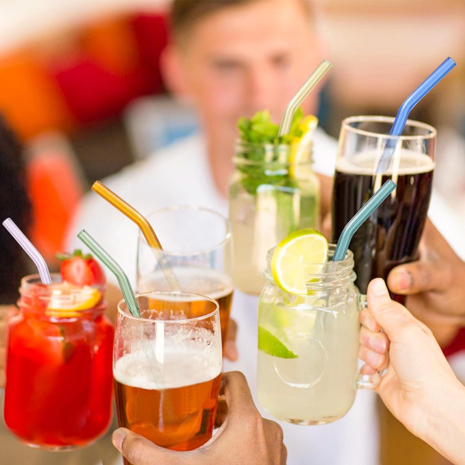 - The 9 inch reusable bent glass drinking straws will make your drinkings more colorful,attract your guests on the party.