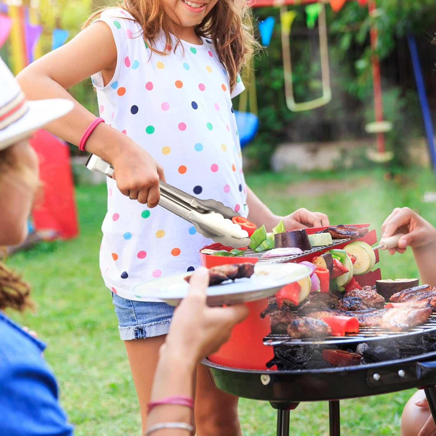 - How to use - The serving tongs are applicable for flipping burgers or fish, grilling meat or as salad tongs. Stainless Steel Metal Serving tongs work well on buffet, catering, wedding, home, party, restaurant, hotel, celebration. Ideal for serving salads, fruit, soups, dessert, steak, noodles, cake, cheese, vegetables, appetizer.