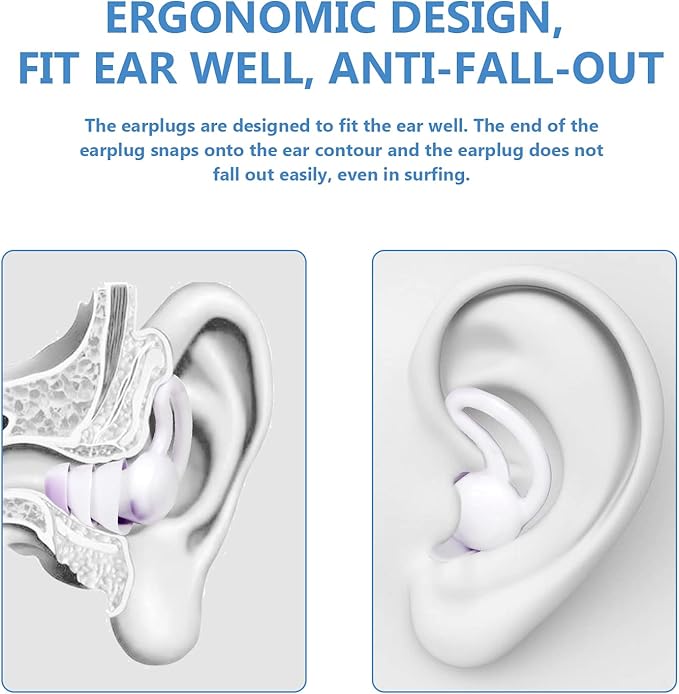 • Ergonomic design & anti-fall-out. The earplugs are designed to fit the ear canal well and the end of the earplug snaps onto the ear, so they do not fall out during sports.