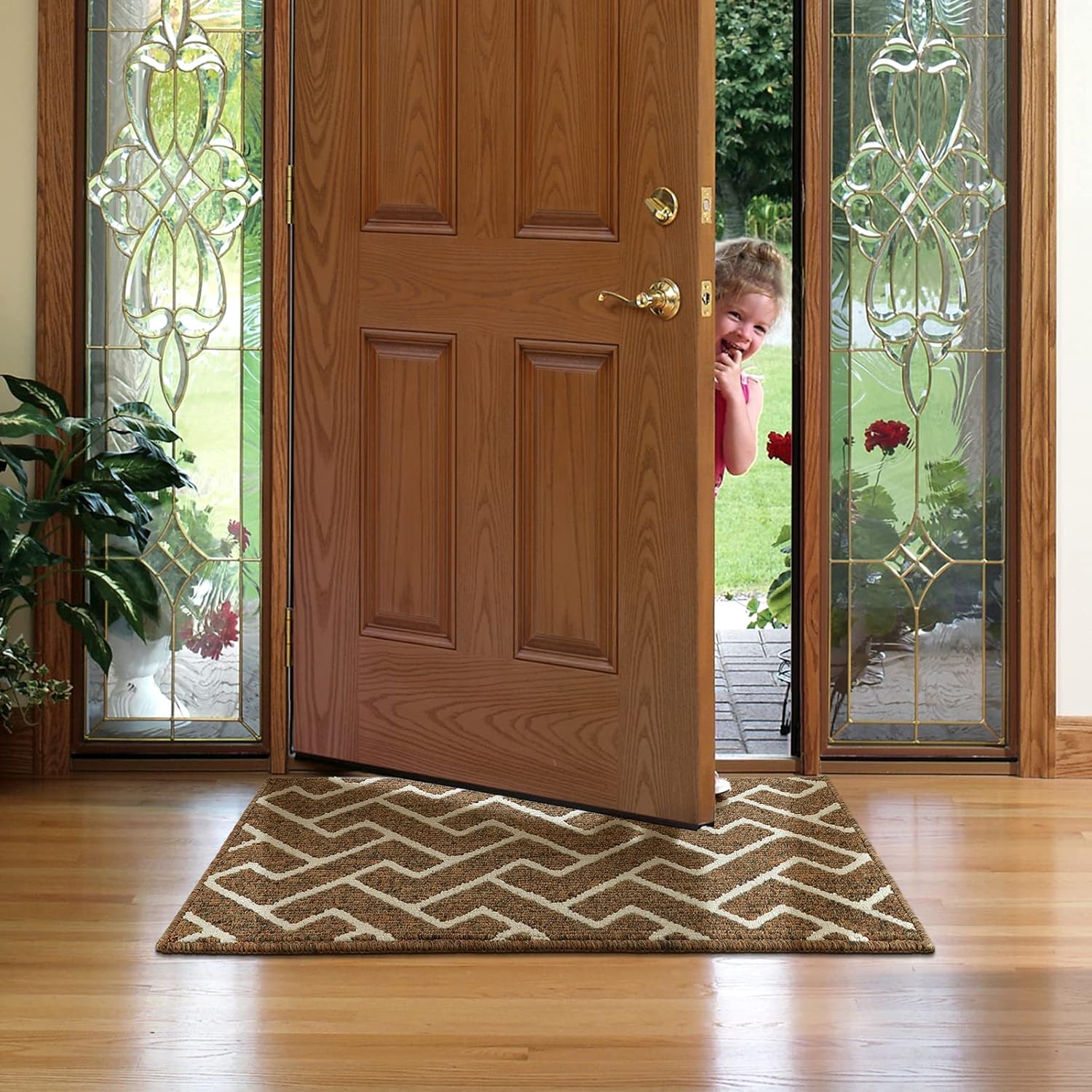 hicorfe Kitchen Rugs and Mats,Kitchen Mats for Floor,24"x35" Non Slip Runner Rug,Absorbent Resist Dirt Comfort Standing Mat Machine Washable for Entryway,Hallway,Front of Sink(Brown)