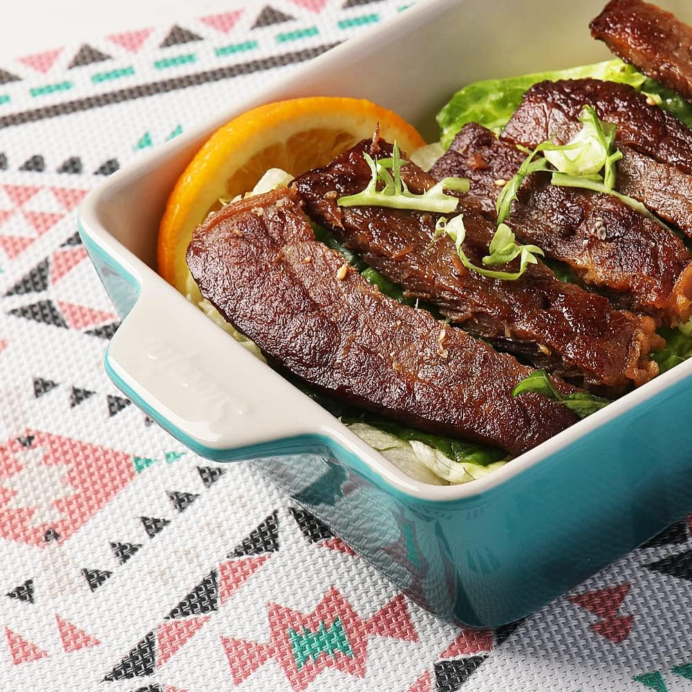 - 【Stylish Rectangular Baking Dish】The rectangular baking dish is equipped with a double handle design for easy food transport from the oven to the table. It is also a charming decoration in your kitchen and dining table which may impress your guests!