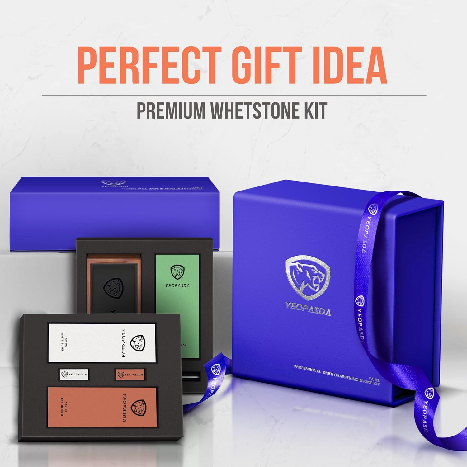 Extra Large Knife Sharpening Stone Kit - YeopAsda Thickered 3 Side Grit 400/1000/6000 Xl Wet Stone - Whetstone Knife Sharpener with Non-Slip Wood Base, Angle Guide, Cut Resistant Gloves