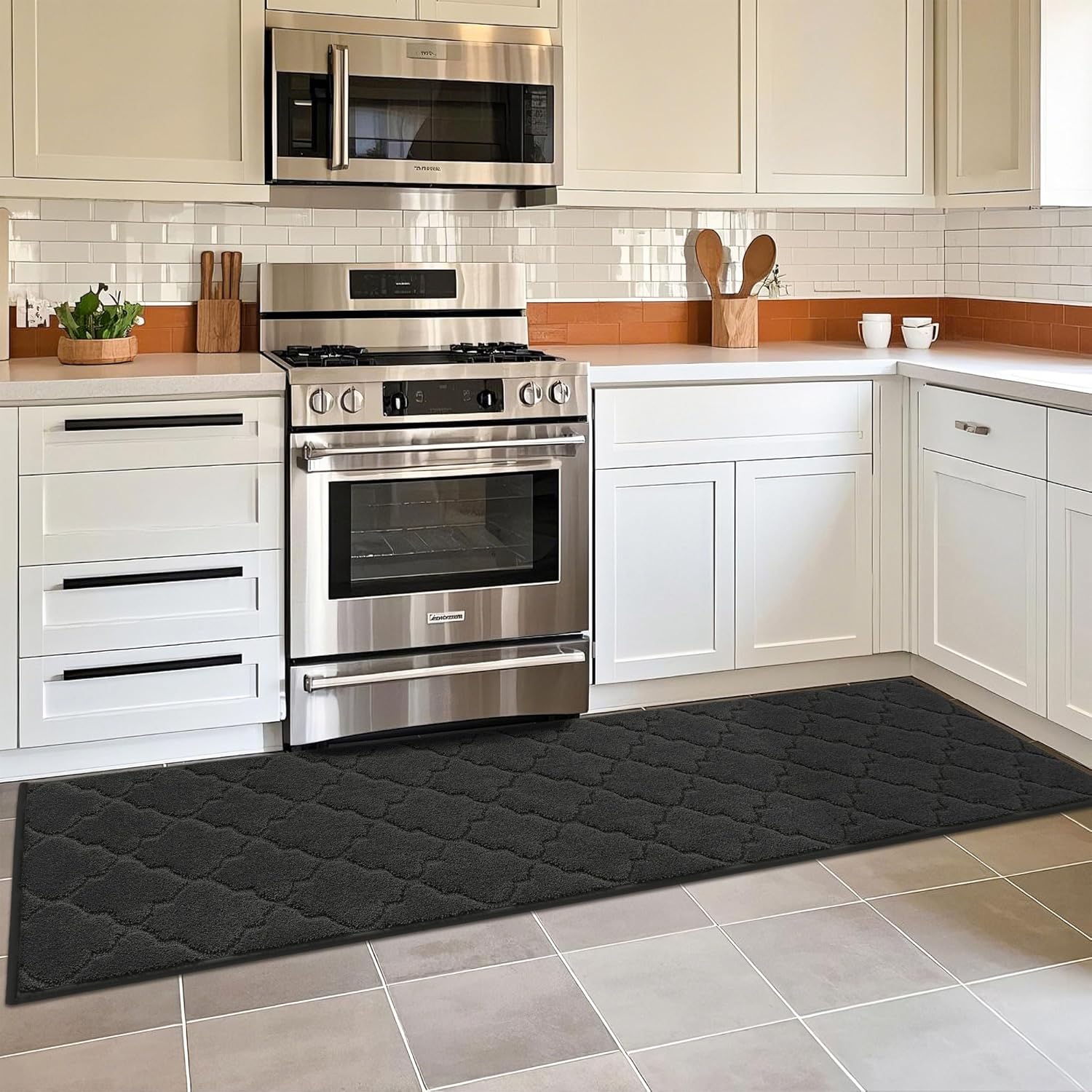 - Soft Rugs for Kitchen: COSY HOMEER Accent Rugs are most popular in kitchens. Brighten it up by placing one at the foot of the sink. Absorb splashed water & oil while cooking.