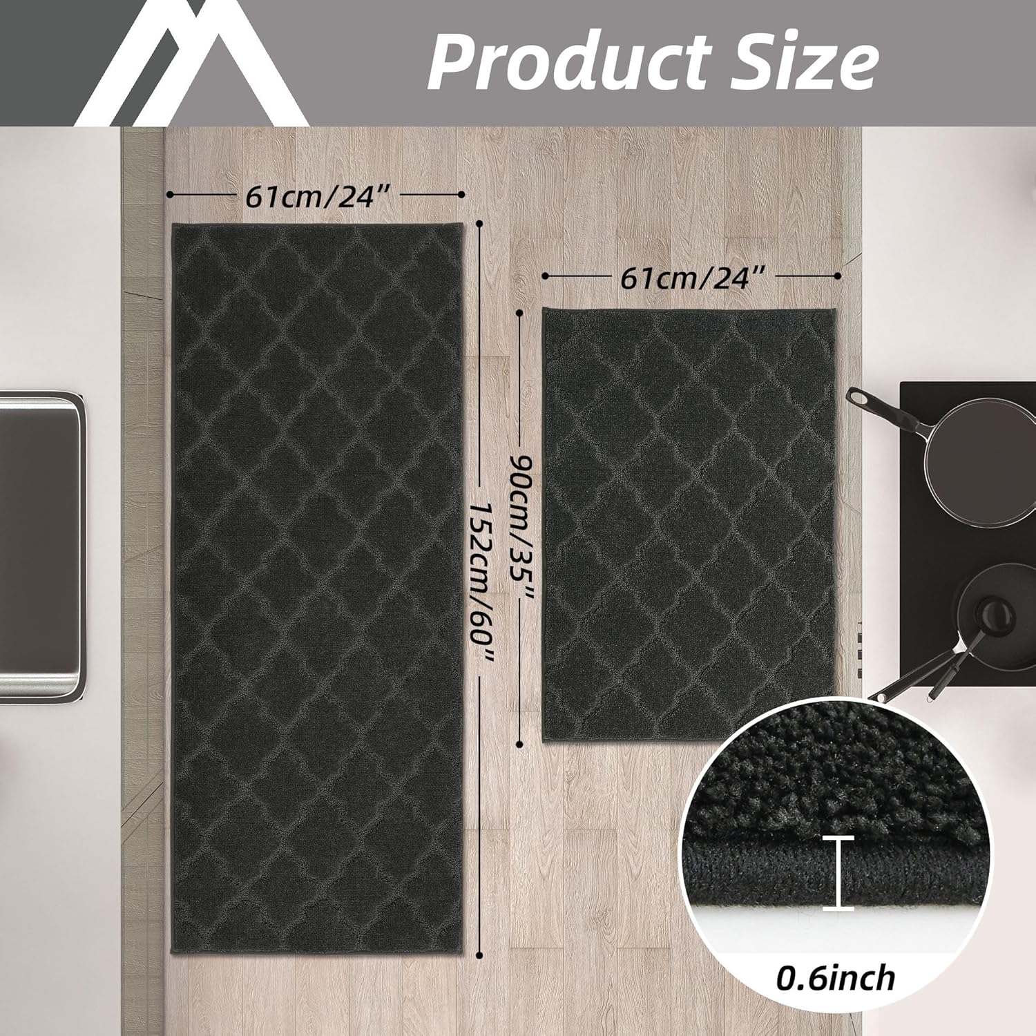 COSY HOMEER Soft Kitchen Rugs [2 PCS] for in Front of Sink Super Absorbent Kitchen Floor Mats and Mats 24x35 Inch/24X60 Non-Skid Kitchen Mat Standing Mat Washable,Polyester,Black
