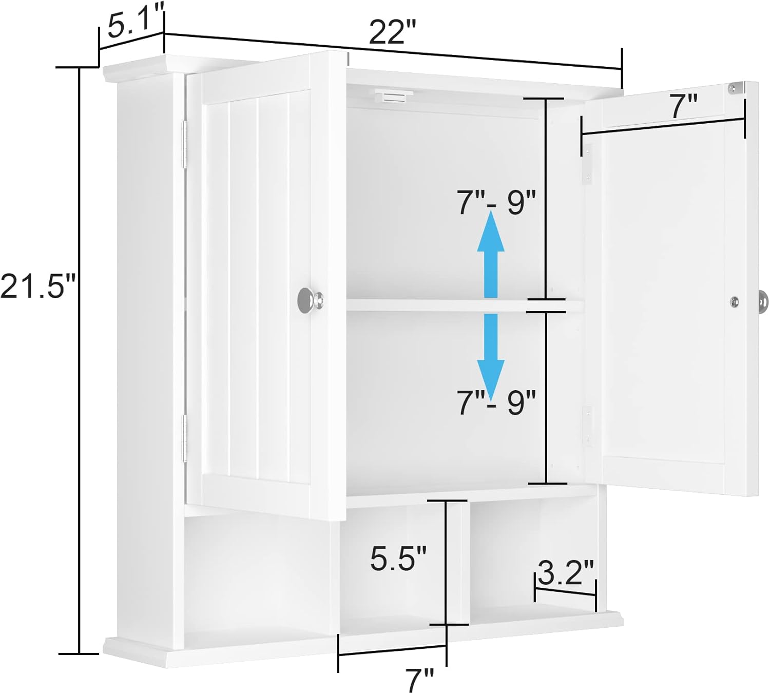 - 【Multifunction Bathroom Wall Cabinet】Wall mounted cabinet is made of premium MDF board, the enclosed space with 2 doors can hide toiletries for a clean presentation,1 adjustable shelf and 1 fixed shelf with 3 separate compartments are suitable for placing decorations, larger storage space, smaller volume, effectively saving countertops space, perfect for your elegant small bathroom design