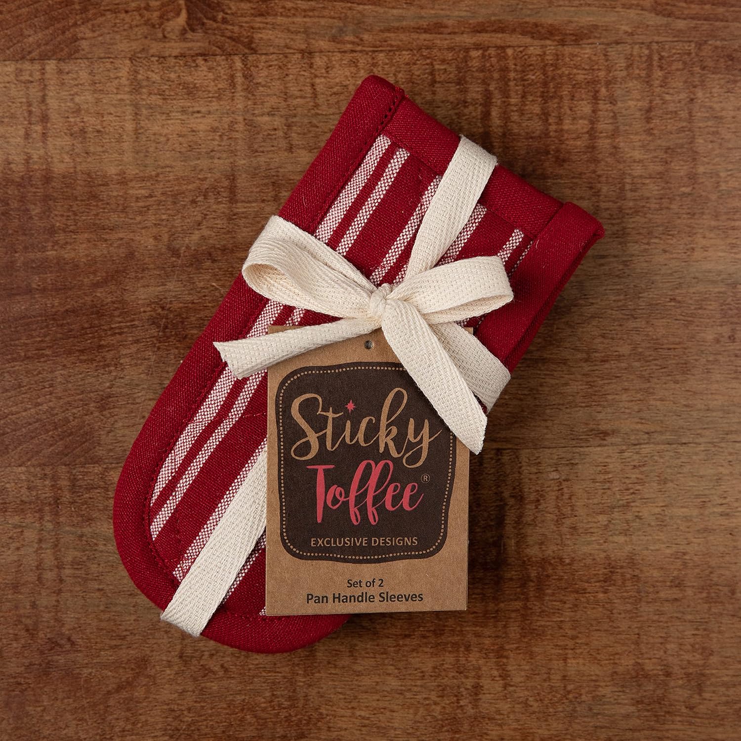 Sticky Toffee Pan Handle Covers for Cast Iron Skillet, Set of 2, Red Heat Resistant Sleeves, 3 x 6 in, Oeko-Tex Cotton Hot Pot Holders