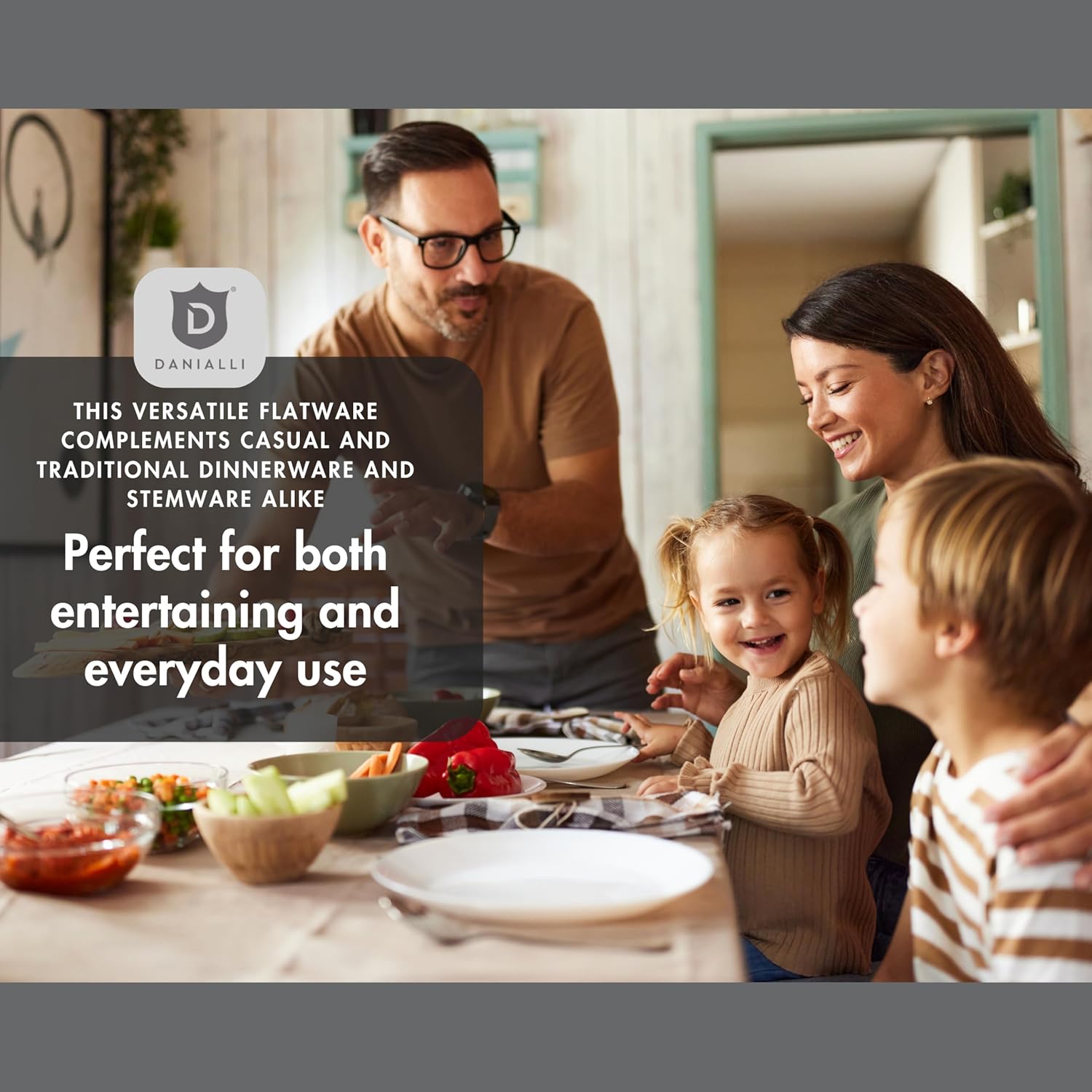 - Complete Service for 8 – Includes 8 dinner knives, 8 dinner forks, 8 salad forks, 8 tablespoons, and 8 teaspoons.