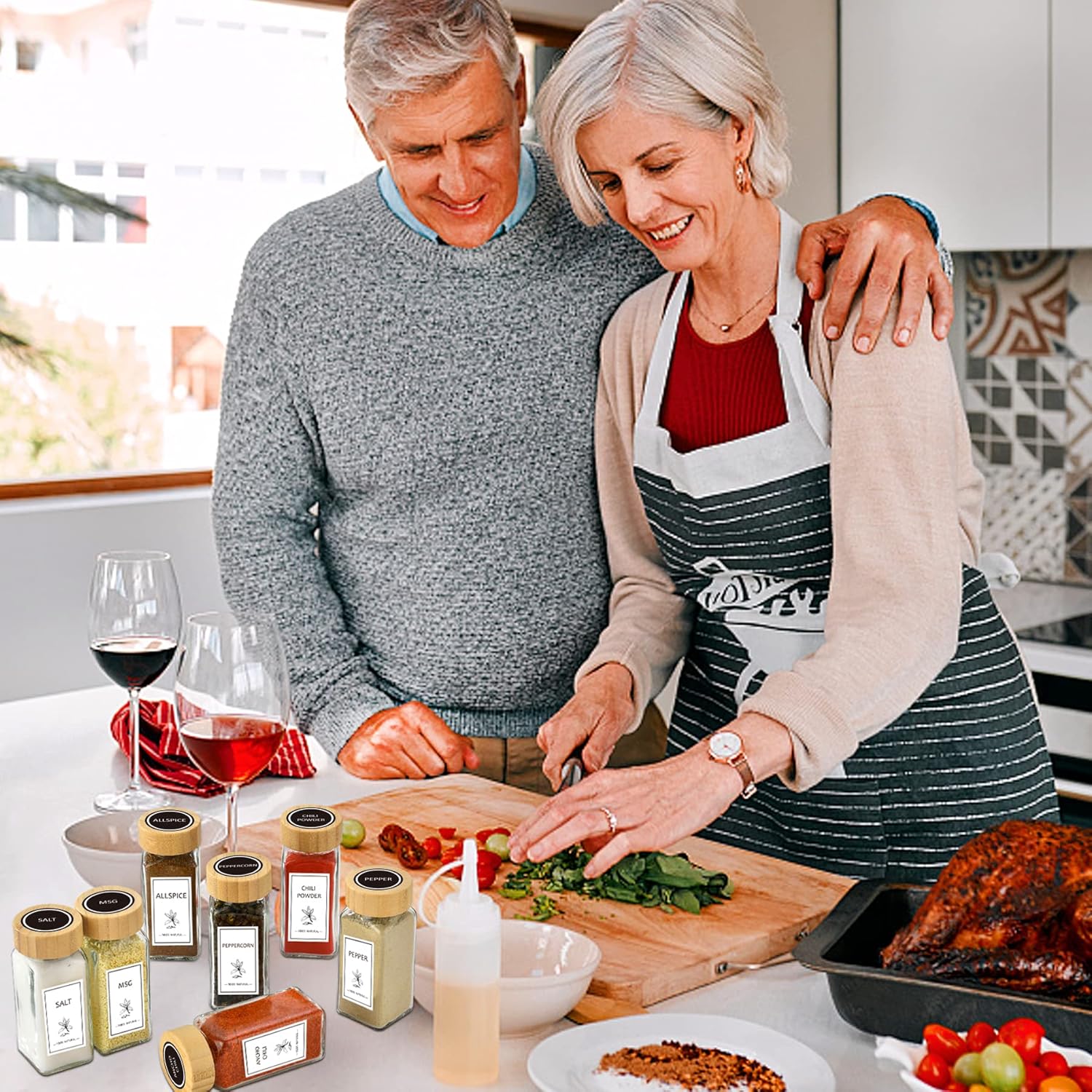 - Great Surprise as Gifts: Practical and stylish beauty is what we have been pursuing, seasoning jars can not only be used to contain a variety of spices but are also decorative, the clear glass spice jars are filled with different colors of spices neatly and consistently placed so that people are pleasing to the eye. Especially on Christmas, Thanksgiving, and other major holidays, spice jar is a good choice as a gift to your family or friends, spice jar set makes easy cooking away from the mess.