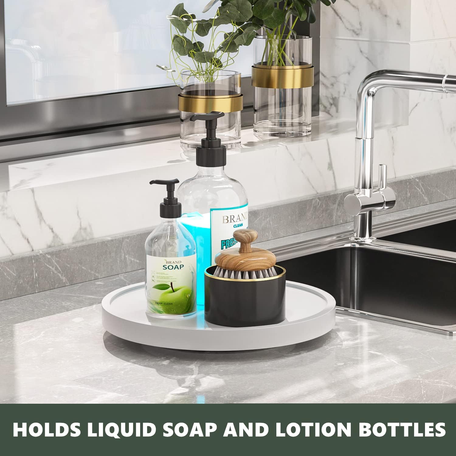 Turntable Vanity Tray 10 Inch for Perfume Candle, Bamboo Kitchen Sink Countertop Organizer for Keep Glass, Sponge and Soap Bathroom Countertop Organizer White