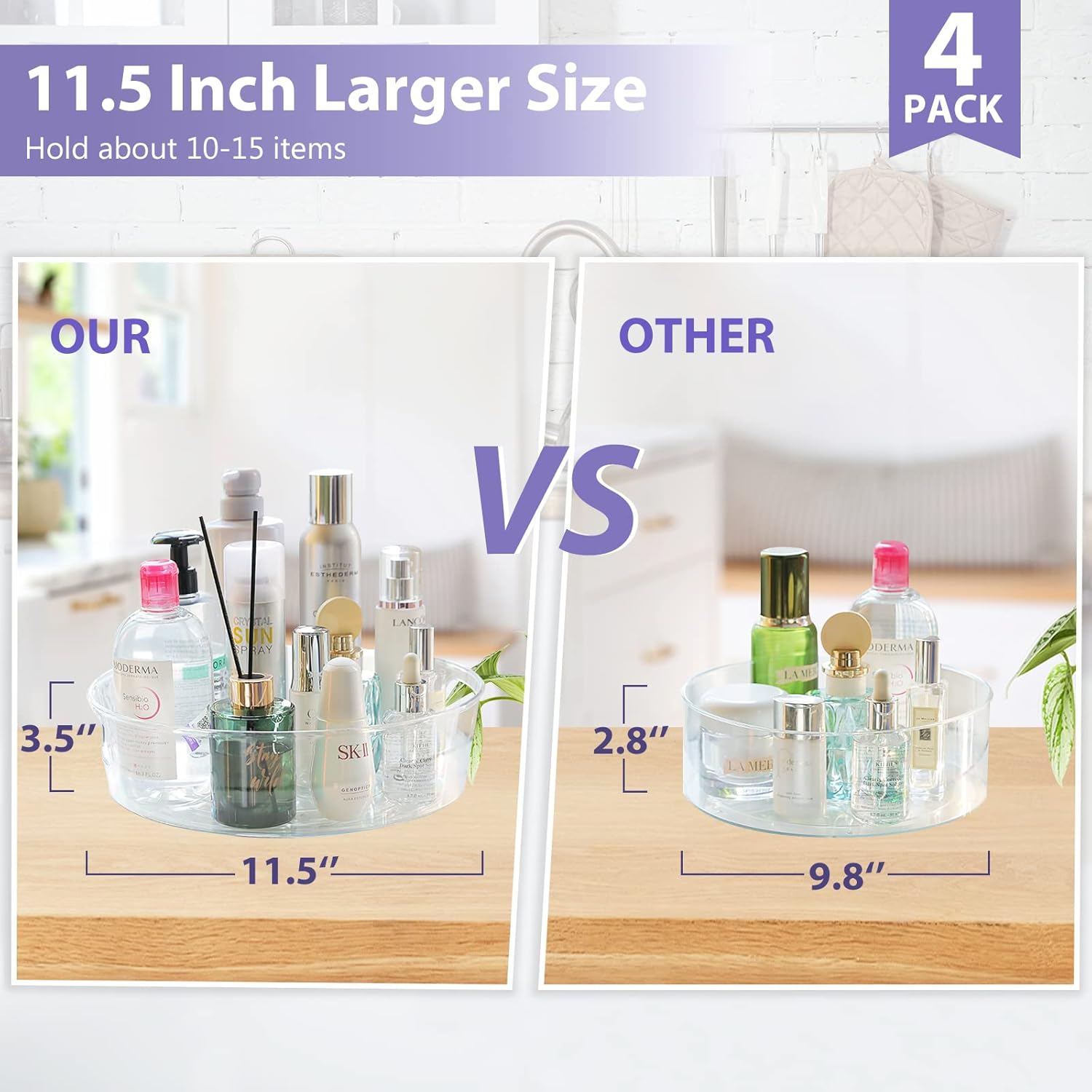 - HANDLE DESIGN & VISIBLE CLEAR - The spinning tray designed with two built in handles, make it easy to carry and move to anywhere you want. And the clear side allows you to see all your items at a glance and find what you are looking for without pulling them out