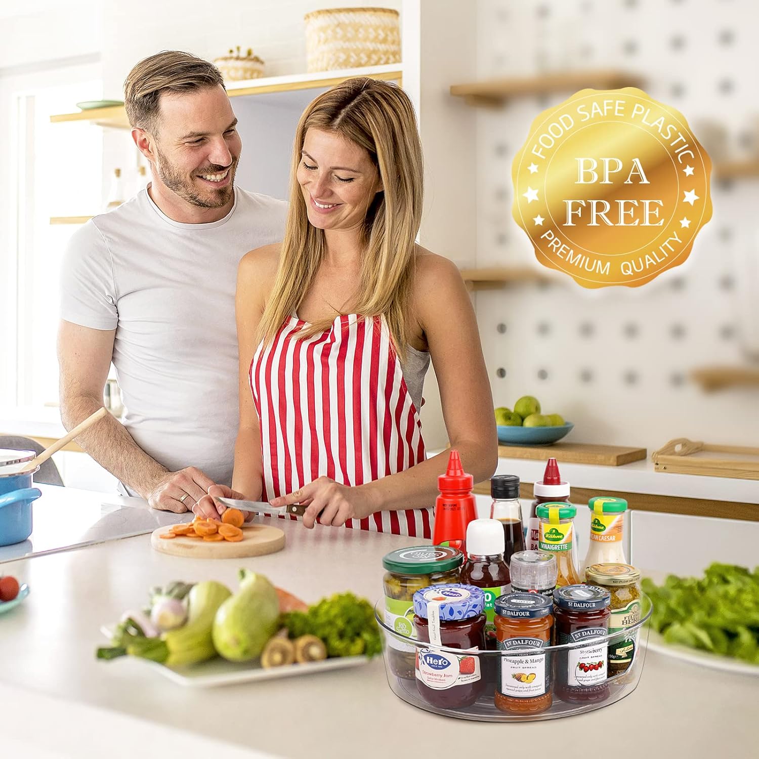 - SAFETY & HIGH QUALITY - This lazy susan cabinet organizer is made of premium durable PE and BPA-free, very fall resistant, offering a long-term durability and safety for food, which is easy to clean with mild soap and water. NOTE: DON'T PUT IT IN DISHWASHER