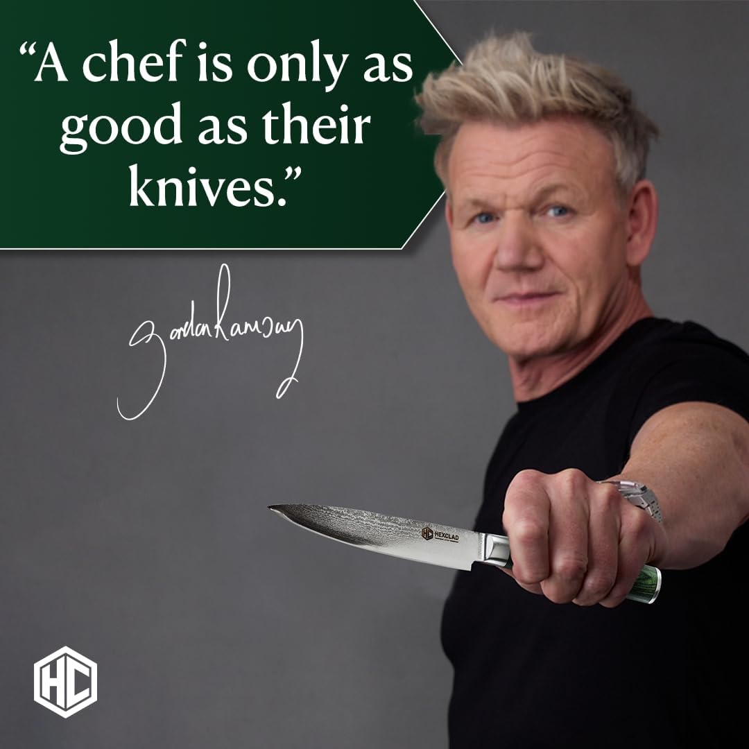 HexClad Utility Knife, 5-Inch Japanese Damascus Stainless Steel Blade, Pakkawood Handle