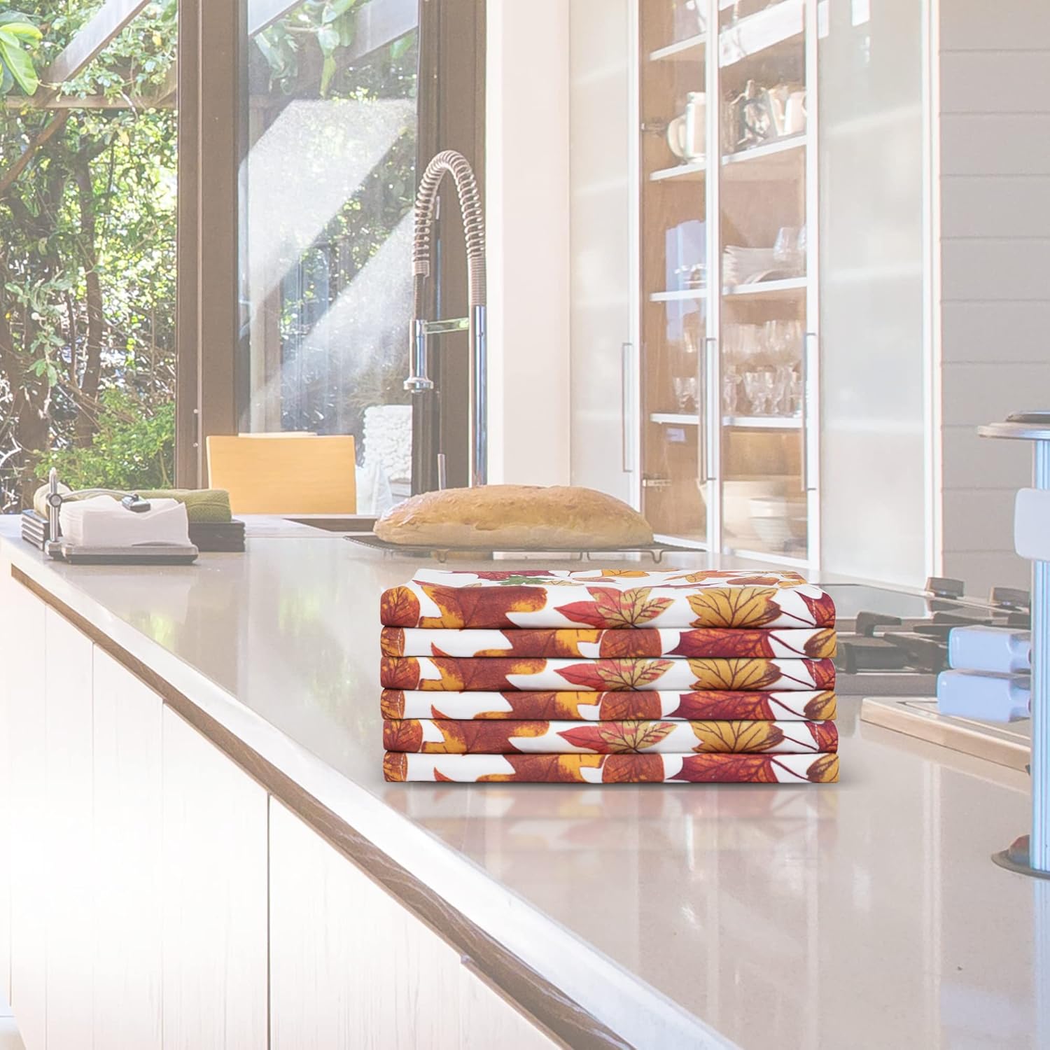 Urban Villa Fall Kitchen Towels Harvest Leaves Print Dish Towels Set of 6 20" X30” 100% Cotton Highly Absorbent Quick Drying Dish Cloths & Dish Towels Thanks Giving Tea Towels with Hanging Loop