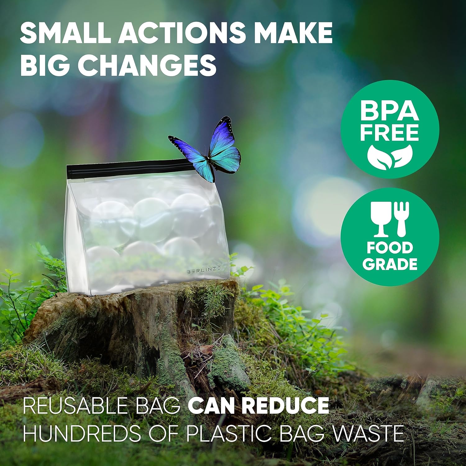 Berlinzo Reusable Ice & Food Storage Bag - Freezer Safe, Leakproof, BPA-Free Silicone, Plastic-Free Lunch Bag - One Bag