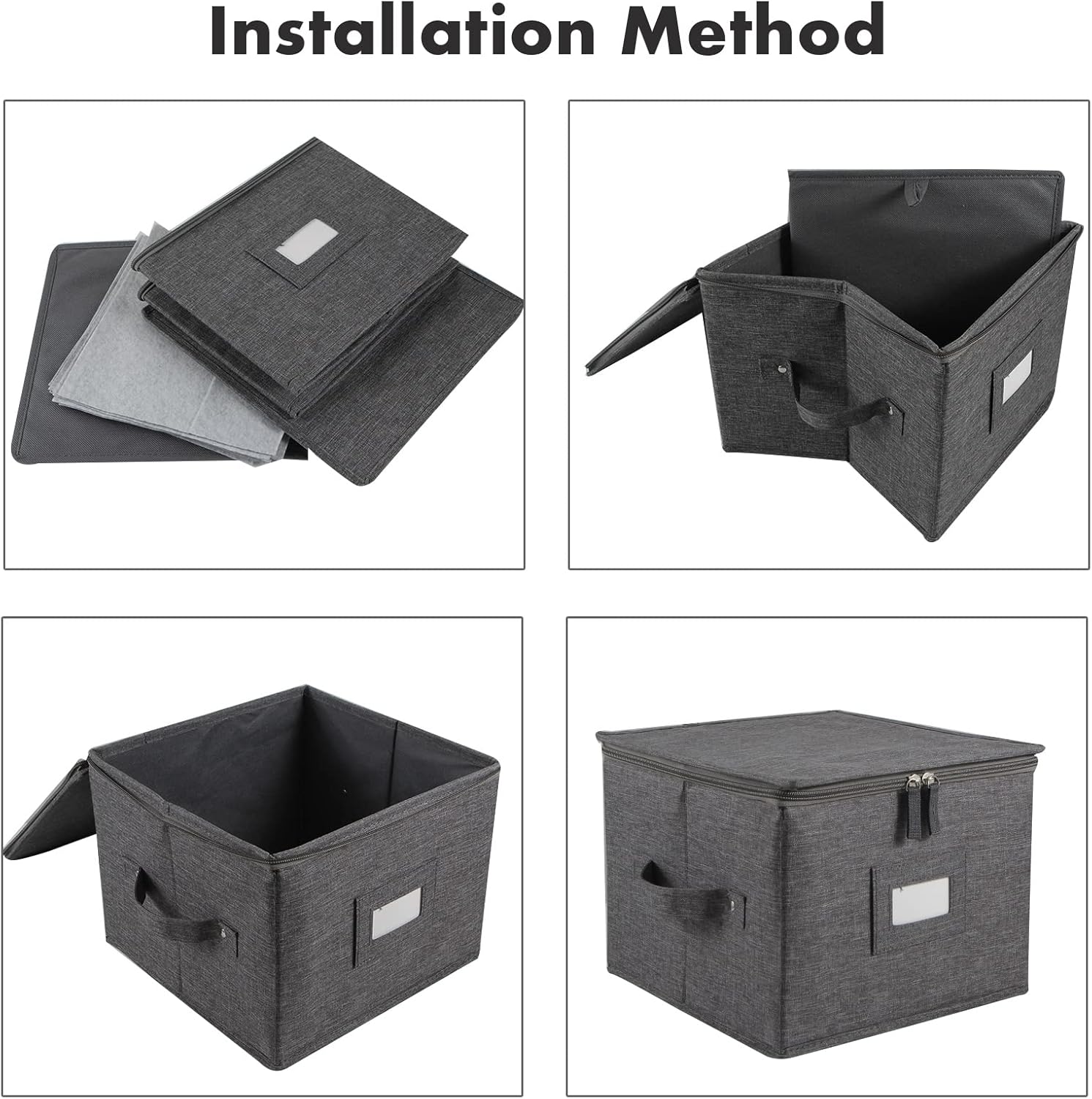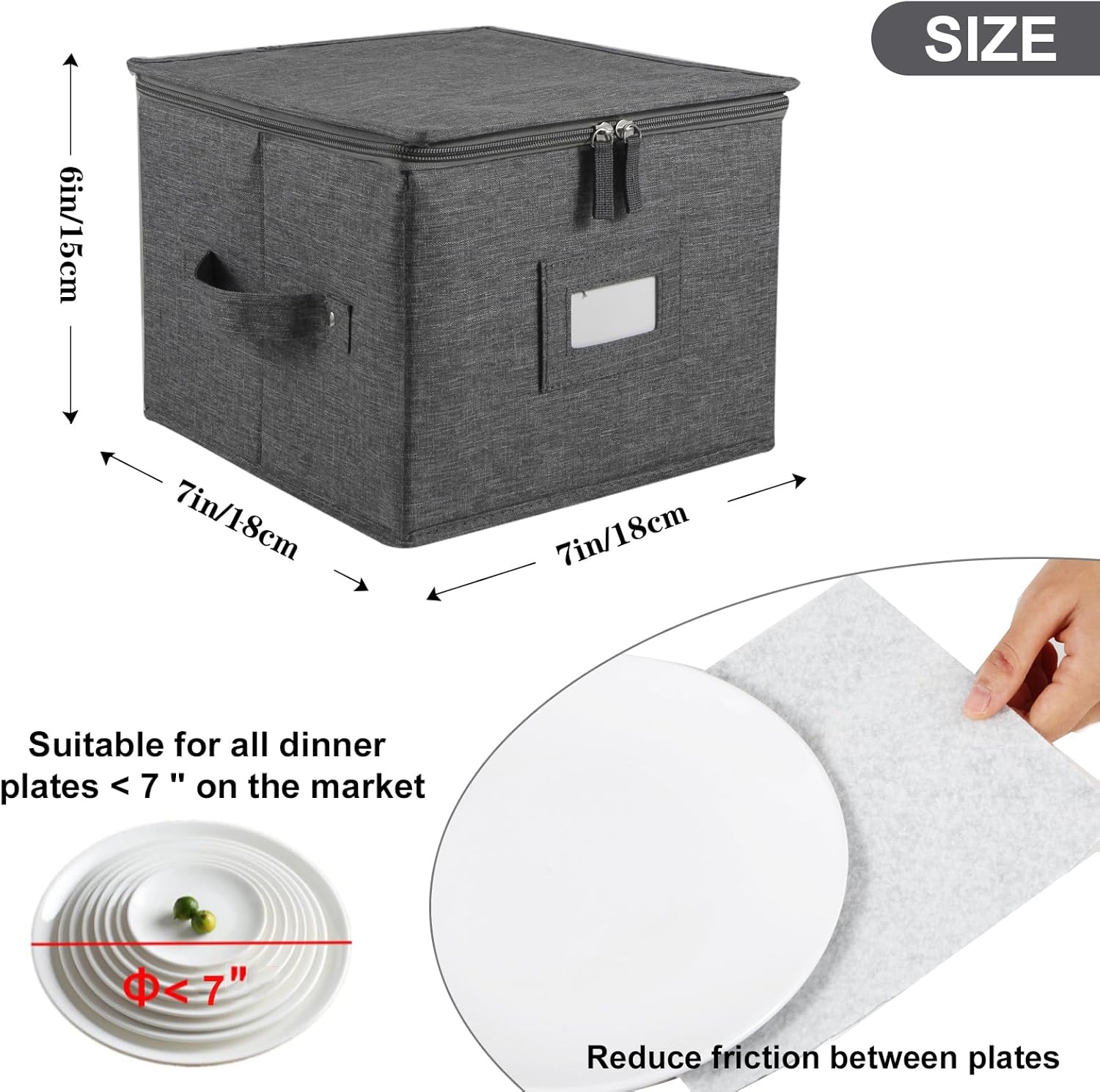 - PREMIUM DURABLE MATERIAL - The china storage containers is made of premium 300D oxford fabric and sturdy thick cardboard, each dish storage containers holds 12 plates, each includes 12 felt plate separators for protection against chipping and scratching