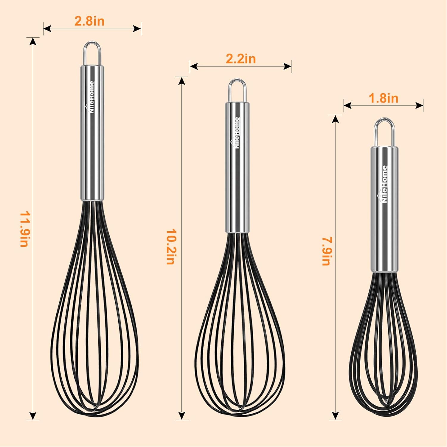 - MULTIPLE SIZES: The whisk has three sizes for you to choose from, which are 12 inches, 10 inches, and 8 inches, you can choose the right size egg beater according to the size of the bowl