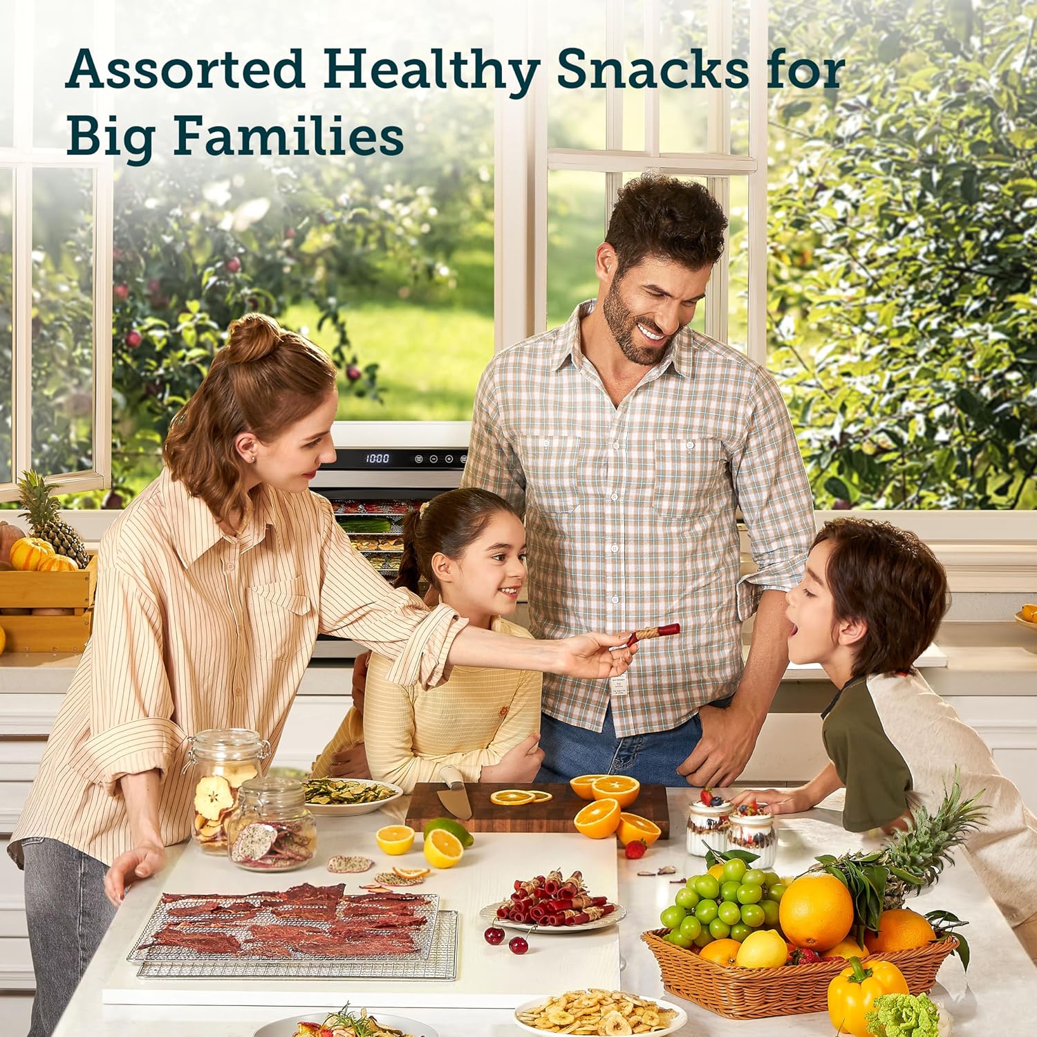 - ๐ ๐๐๐๐๐-๐ ๐๐๐๐๐๐๐ ๐๐๐๐๐๐: Create an array of healthy homemade snacks like dried fruits, veggies, and jerky, preserving ๐ต๐ฎ% ๐ค๐ ๐ฅ๐ง๐ค๐ฉ๐๐๐ฃ. Perfect for large families. A rear fan ensures even dehydration, no over-drying or moisture issues