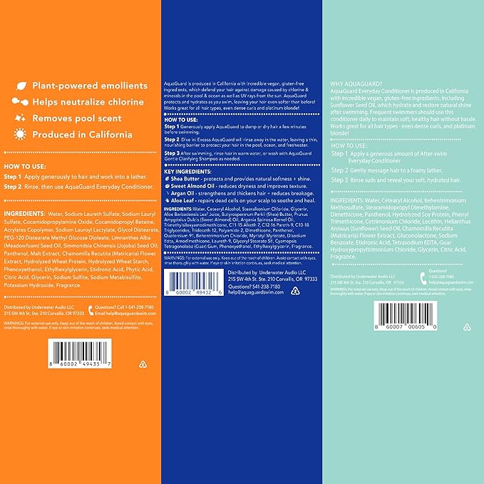 AQUA GUARD Swimmers Essential Hair Protection Bundle | Prevents Chlorine Damage + Softens Hair While Swimming | Color Safe, Leaves Hair Smelling Great | Made in California
