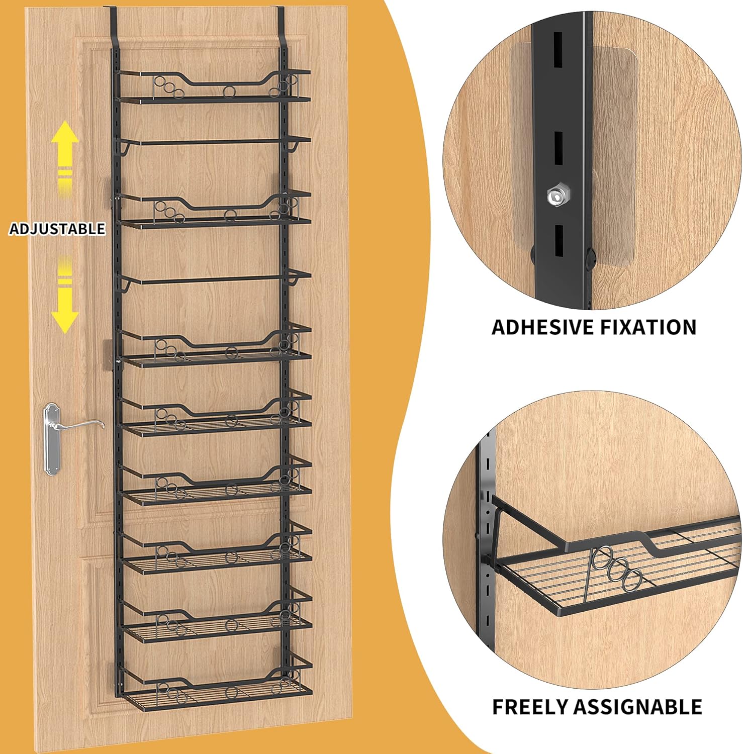 Moforoco 8-Tier Over The Door Pantry Organizer, Pantry Organization and Storage, Black Hanging Basket Wall Spice Rack Seasoning Shelves, Home & Kitchen Laundry Room Bathroom Essentials accessories