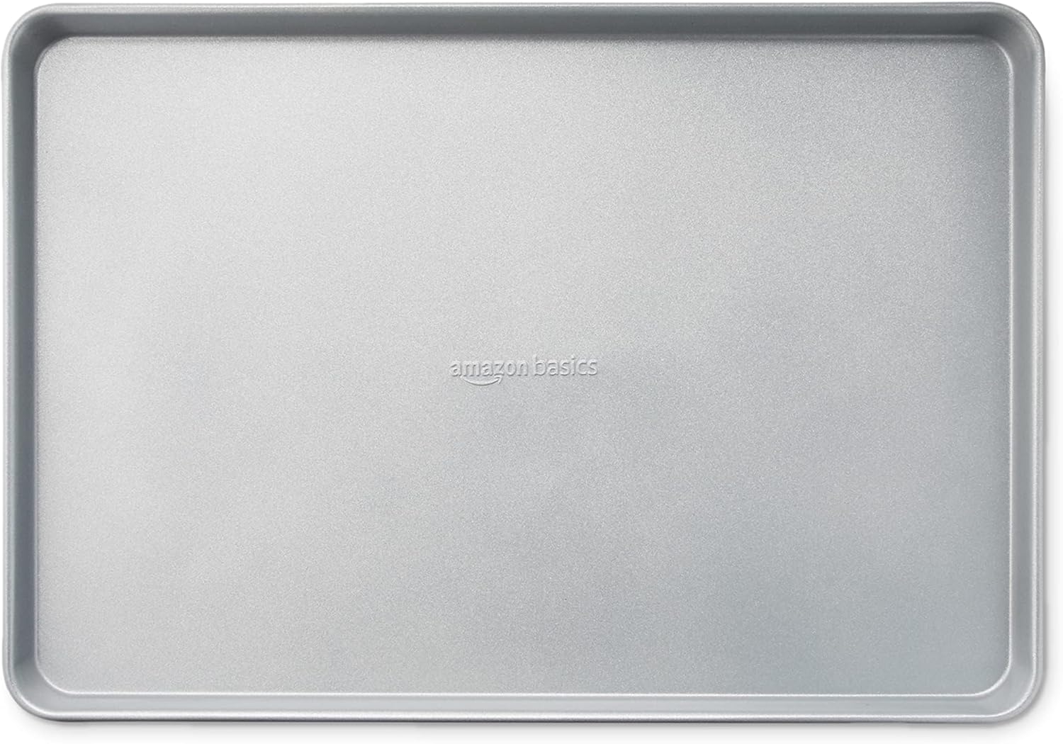 Amazon Basics Ceramic Nonstick Baking Sheet & Cooling Rack Set, Non-Toxic, Half Sheet Size - 1 Pack, Gray