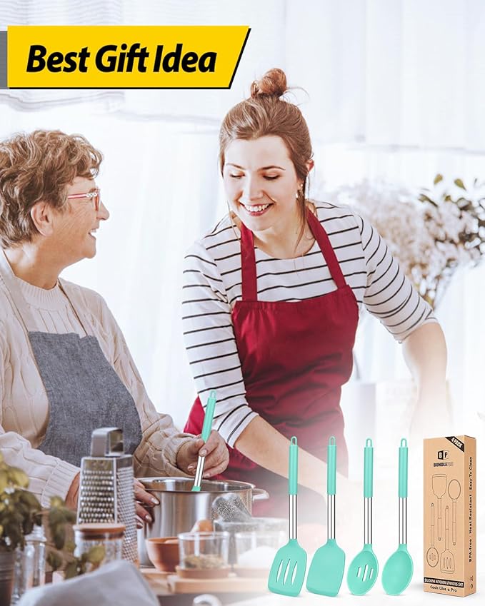 - Thoughtful Design : The good-quality 18/8 stainless steel keeps you away from the trouble of kitchen utensils rusting or breaking; This anti-scald silicone handle is not easy to conduct heat and is more comfortable to hold than traditional utensils