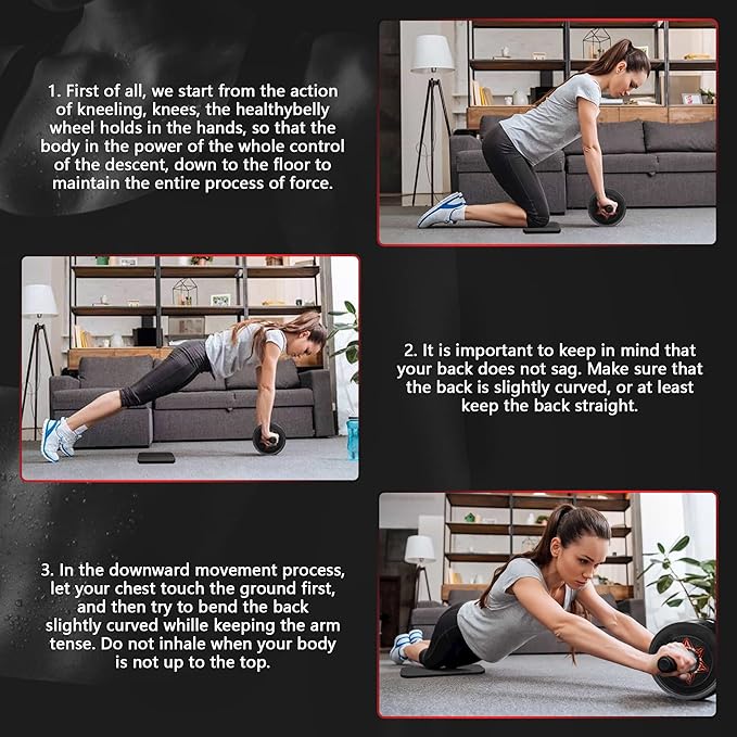 • FULL BODY TRAINING - With this high-quality Abs roller, you can strengthen and adjust your abs, shoulders, arms and legs. Each repetition of stretching exercises will focus on your abdominal muscles, hip flexors, shoulder and back muscles. It not only helps to improve your lower back strength, but also reduces the risk of muscle injury