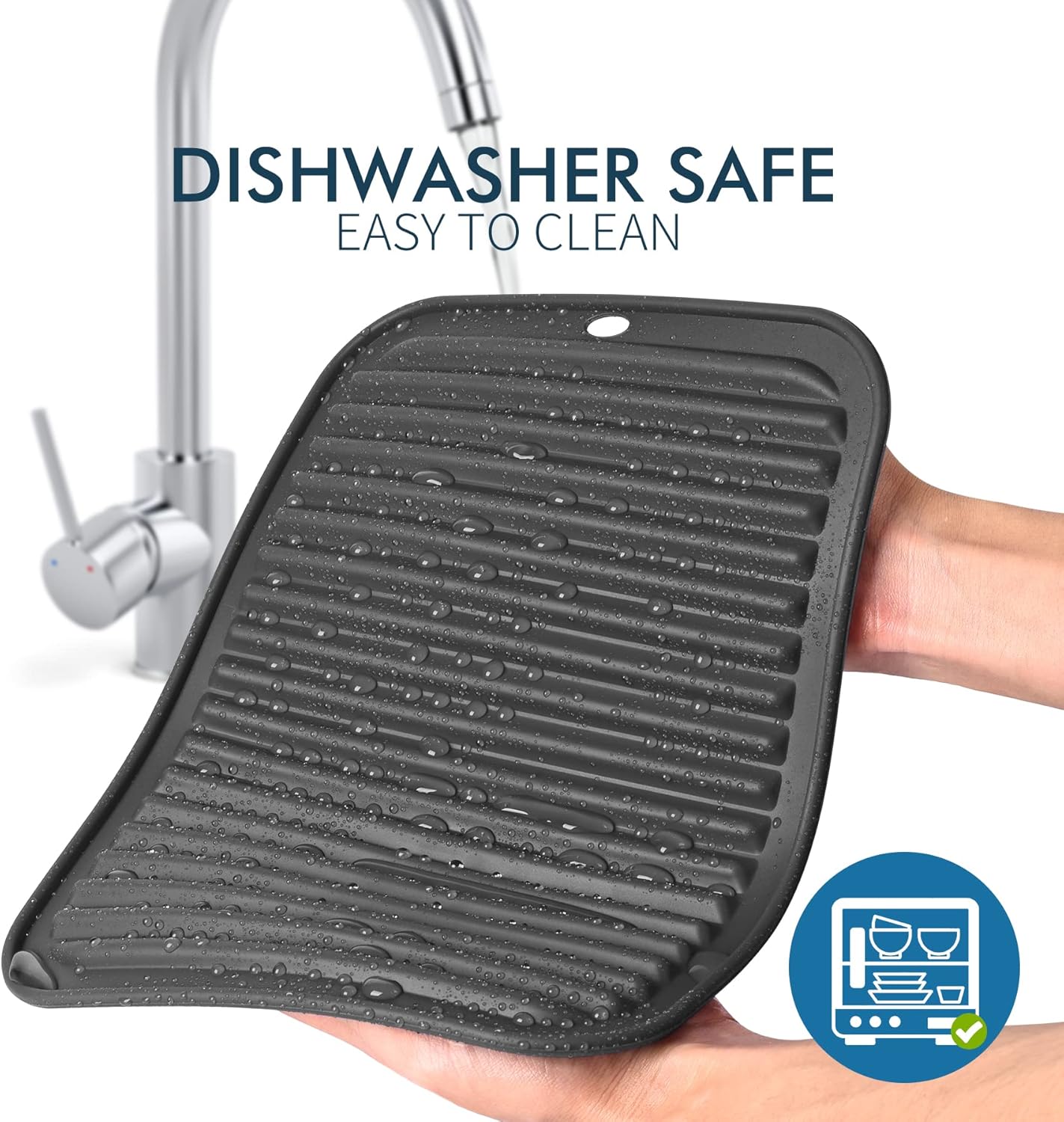 - Wide Variety of Uses: Non-slip, flexible and soft, great choice for drying mat or placemat,like if necessary, somewhere to rest errant spoons,even act as excellent dish mats. if you want something nice-looking protecting your counter and it perfectly fits the bill. The silicone is easily wiped after spots or spills; the double-sided grooves allow air space so the mat grips well and is not heat conducive.