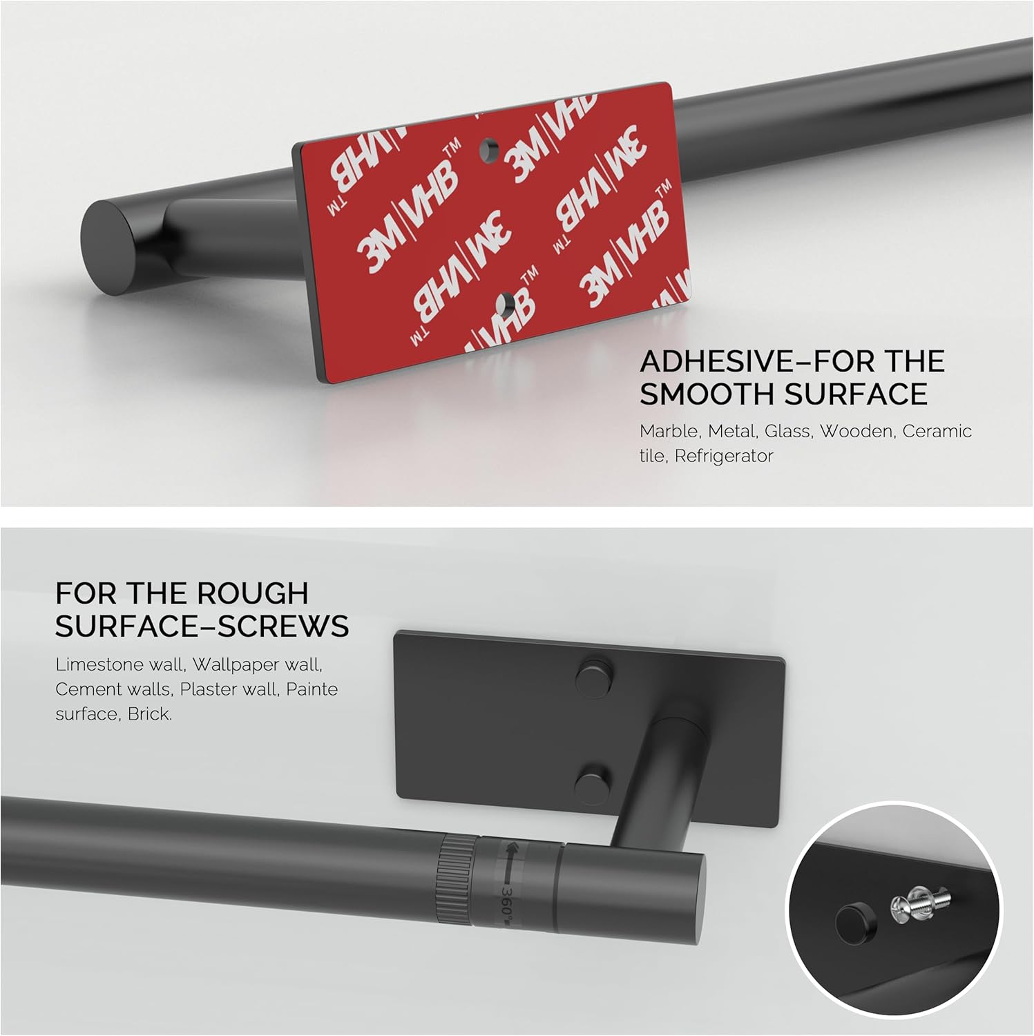 Paper Towel Holder Under Cabinet, Self Adhesive or Wall Mounted SUS304 Stainless Steel Paper Towel Holder for Kitchen, Bathroom, Farmhouse, Barbecue and Laundry (Matte Black)